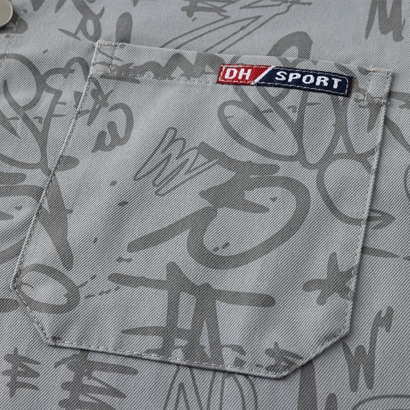 长袖衬衫春秋季百搭宽松早秋字母满印开衫衬衣潮流痞帅青年男外套