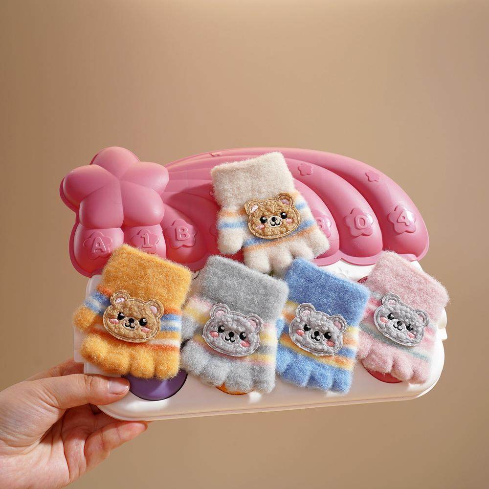 半分指婴幼儿手套小宝宝冬季保暖防寒卡通可爱0-2岁男童女孩针织1