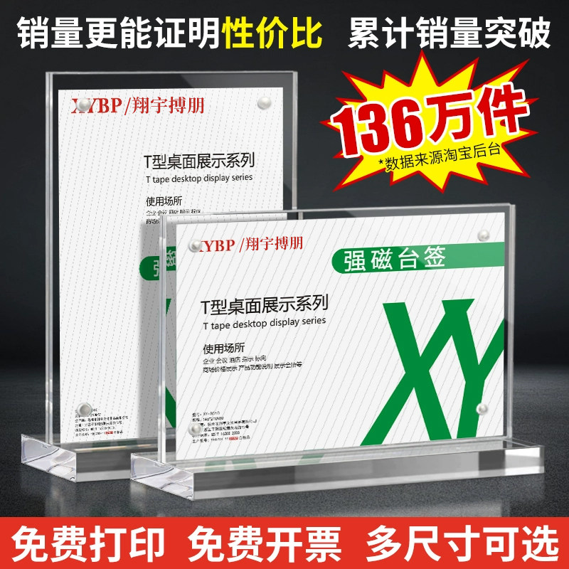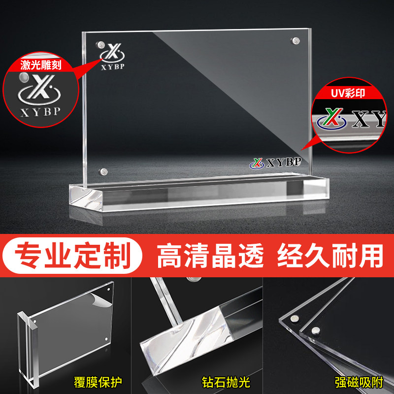 强磁台卡 亚克力立牌展示架 桌面桌卡桌签台签桌牌架牌台牌摆台a4会议牌子a5展示牌价格定制台卡架t型透明