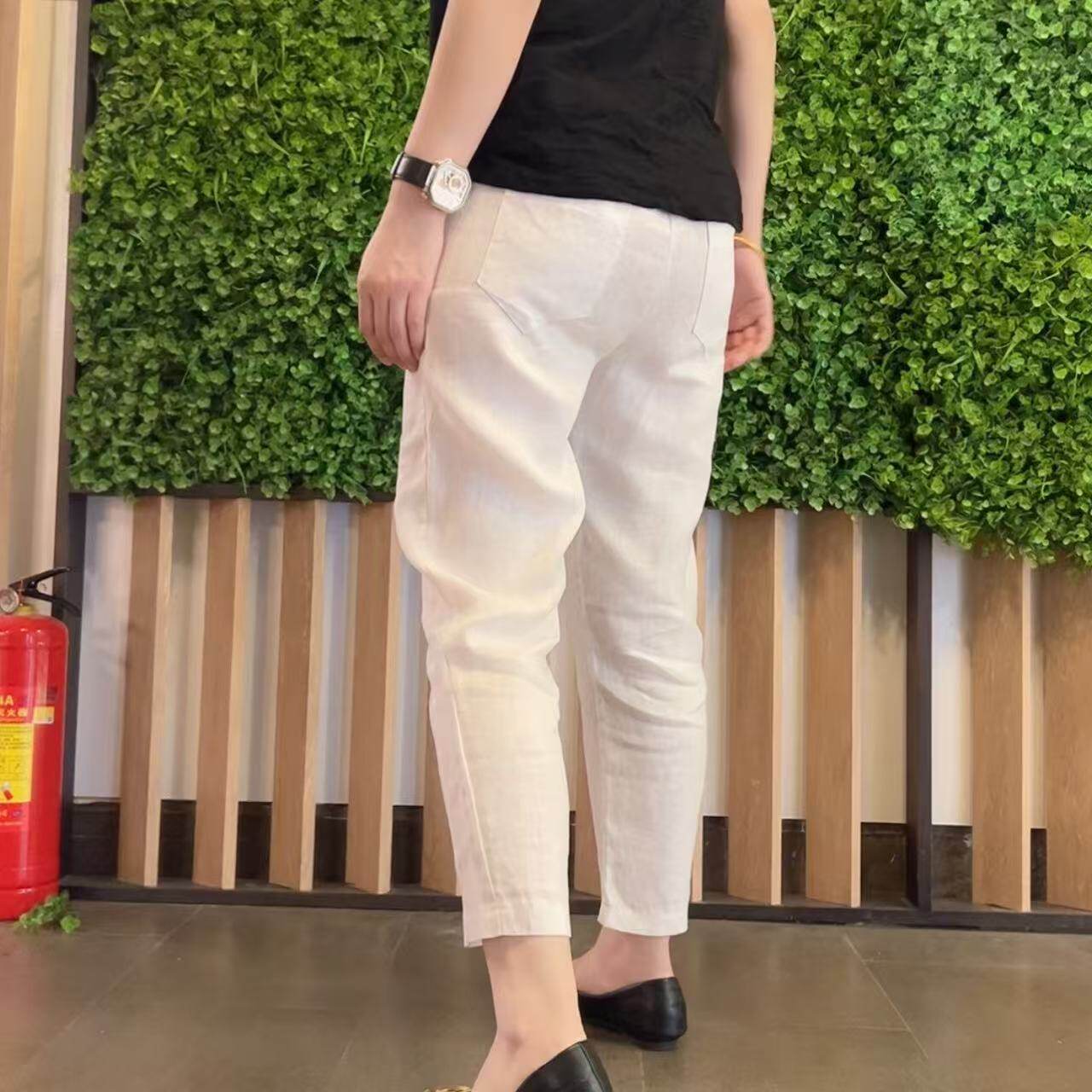 018款小个子夏季薄料亚麻9分显瘦小脚裤