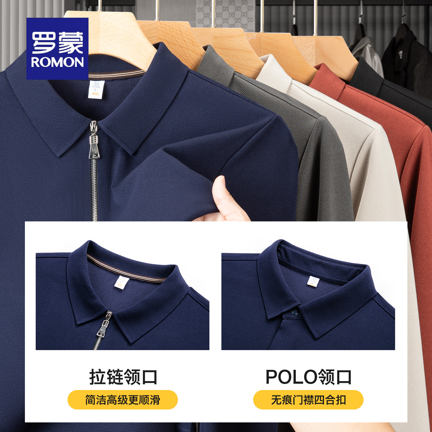 罗蒙男士时尚简约休闲长袖Polo衫