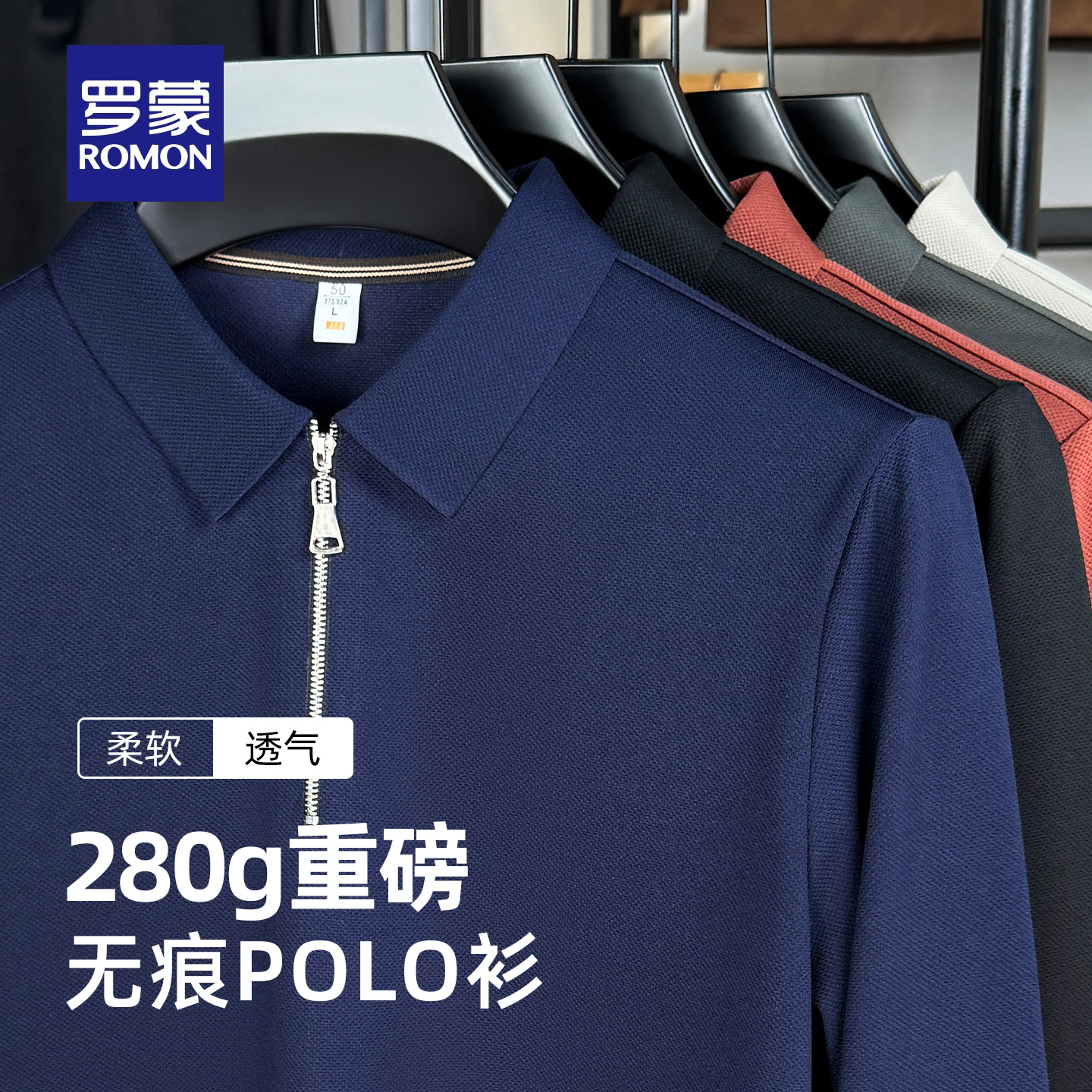 【重磅280克】罗蒙男士时尚休闲长袖Polo衫2025秋季新款简约T恤衫