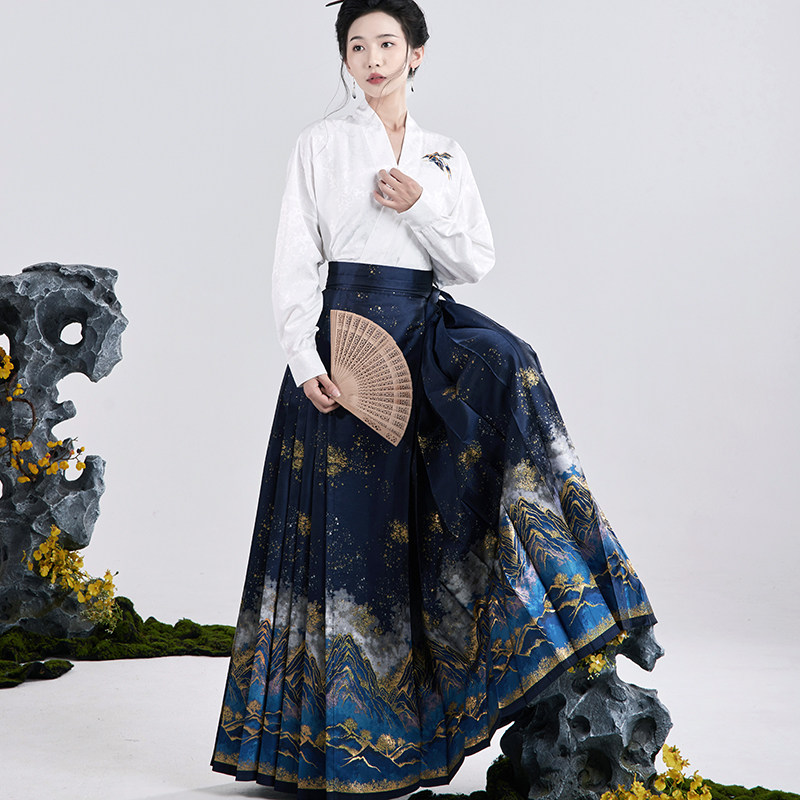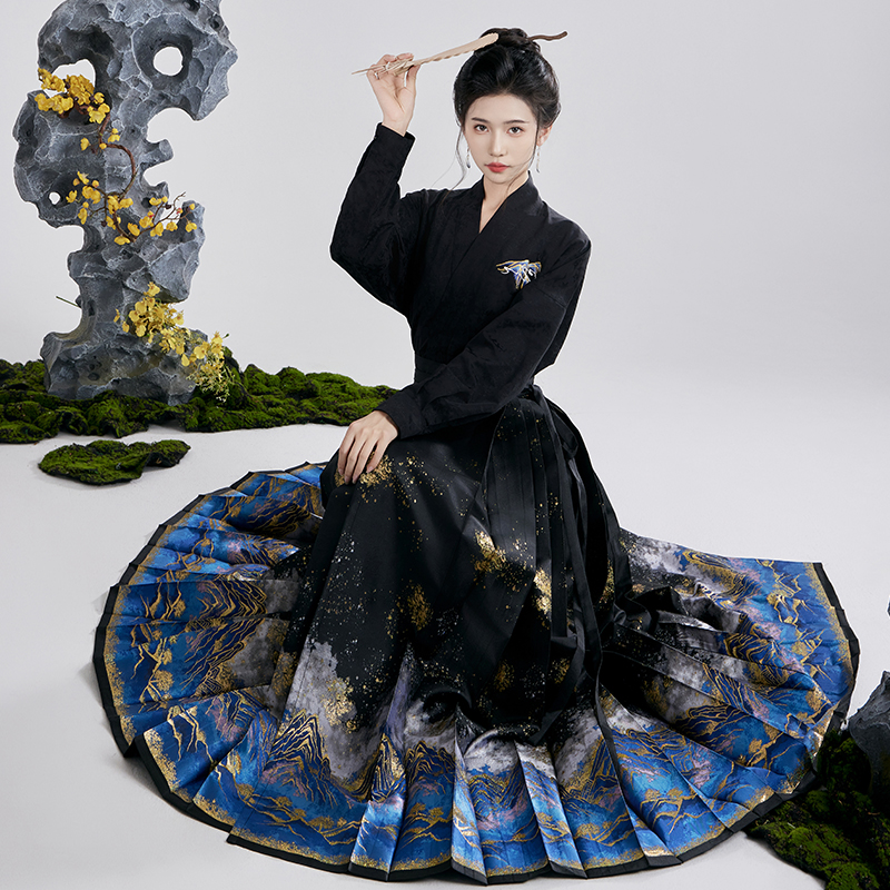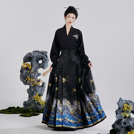 序绘原创汉服[寻星辰]改良交领刺绣织金妆花黑色马面裙女冬款日常