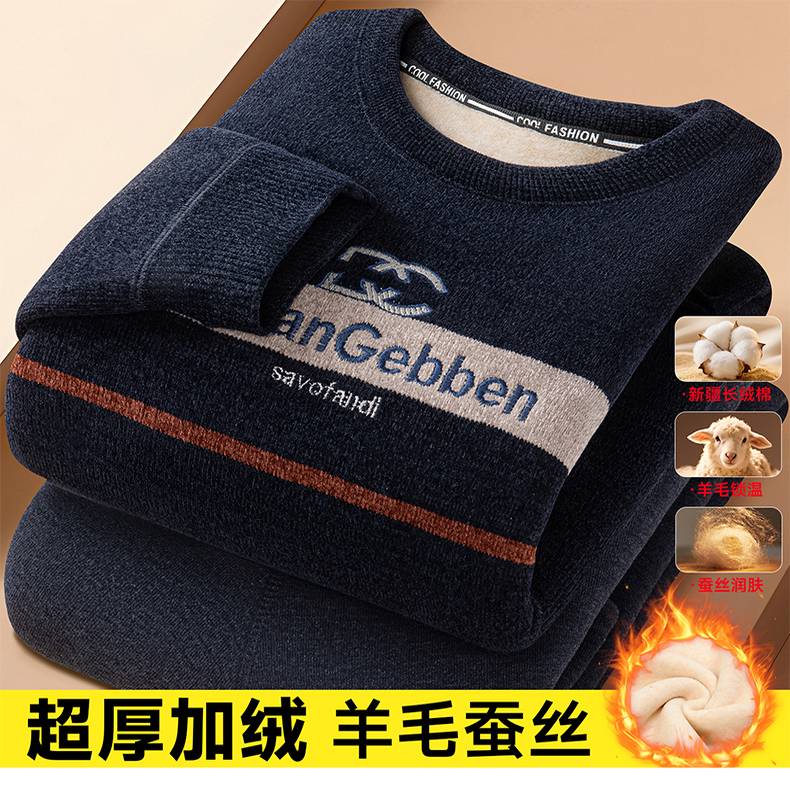 啄木鸟超厚男士冬季内衣保暖套装中老年加绒加厚可外穿打底秋衣裤