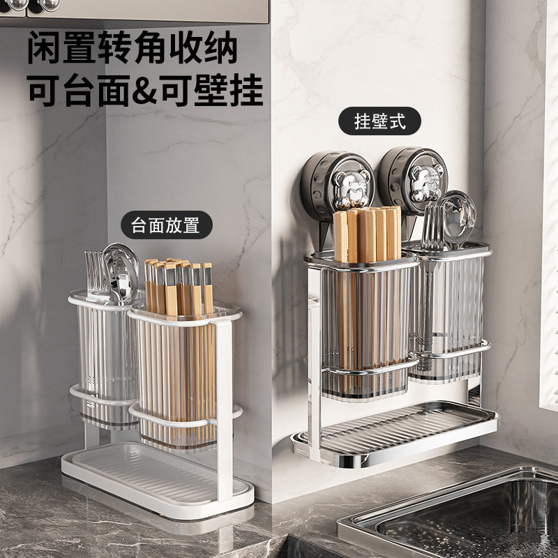 日本吸盘筷子筒壁挂式新款厨房勺子餐具置物架不锈钢沥水防霉