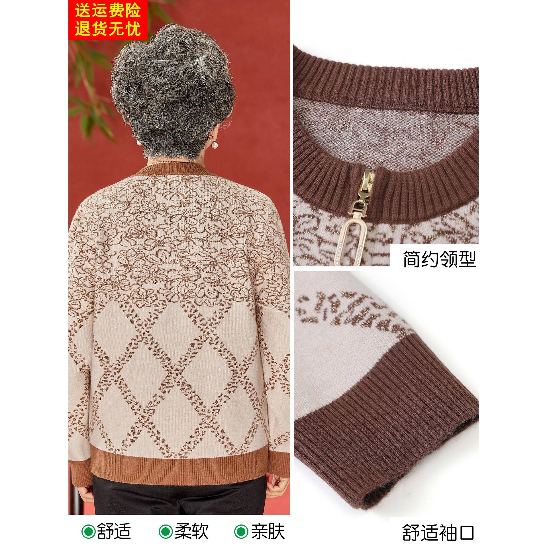妈妈秋装针织衫外套2025新款中老年人衣服女奶奶毛衣春秋短款开衫