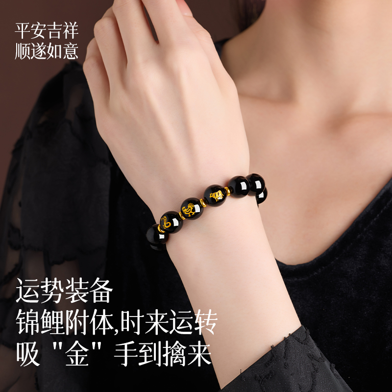 普陀山2025年犯太符黑曜石手串女蛇年本命年三合生肖手链男护身符