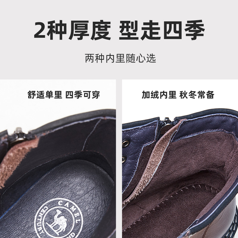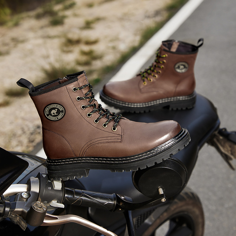 清仓骆驼男鞋秋冬季真皮马丁靴男高帮休闲皮靴系带英伦风工装靴子