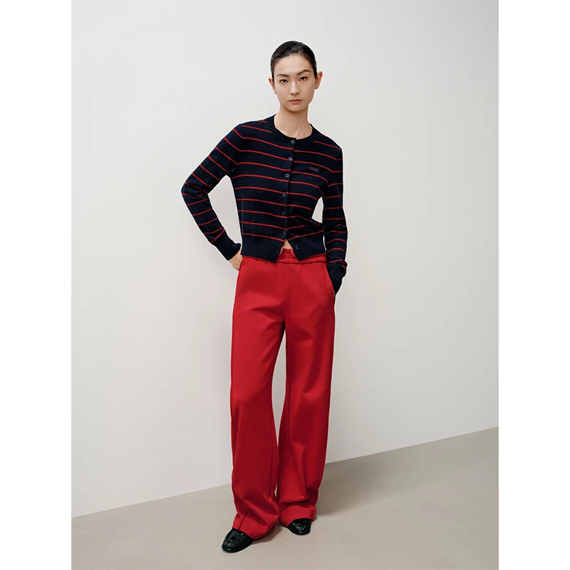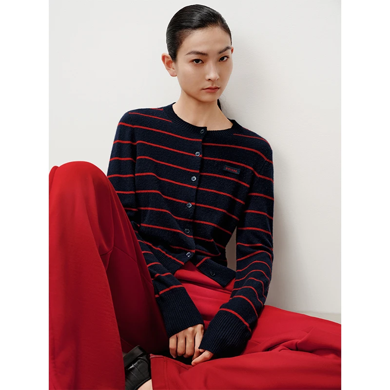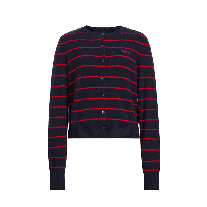 艾诺丝尚忆官方旗舰店2025冬季新款条纹针织衫开衫女毛衣804118