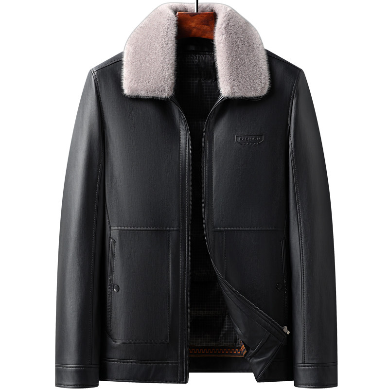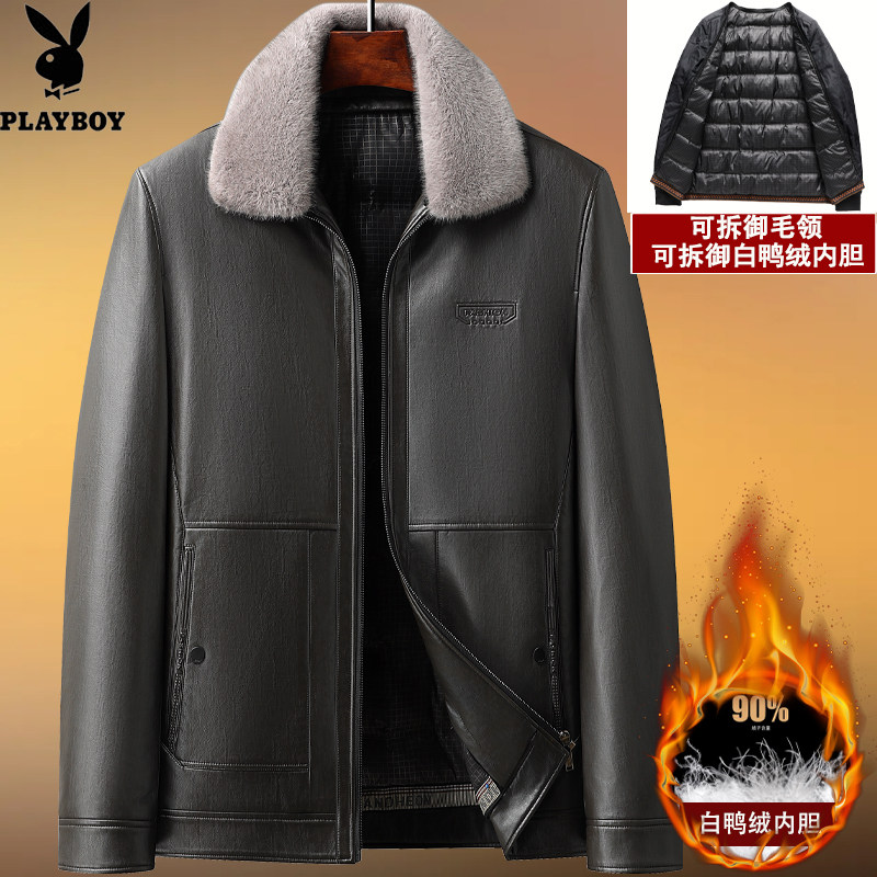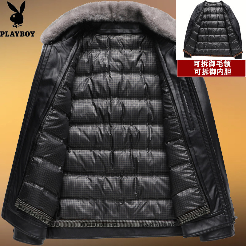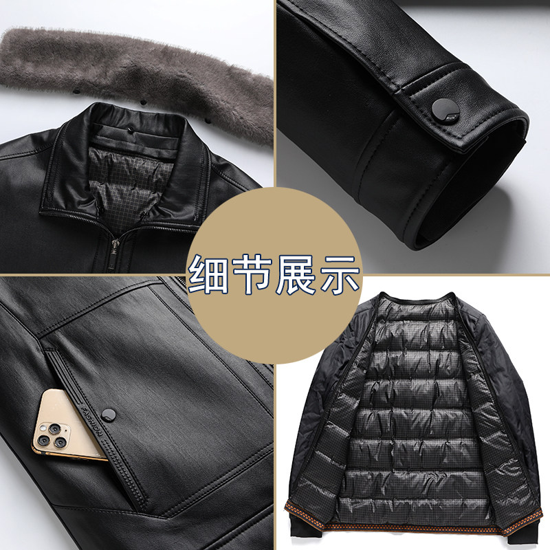 秋冬季新款中老年爸爸装可拆羽绒内胆真皮皮衣男士爷爷保暖皮夹克
