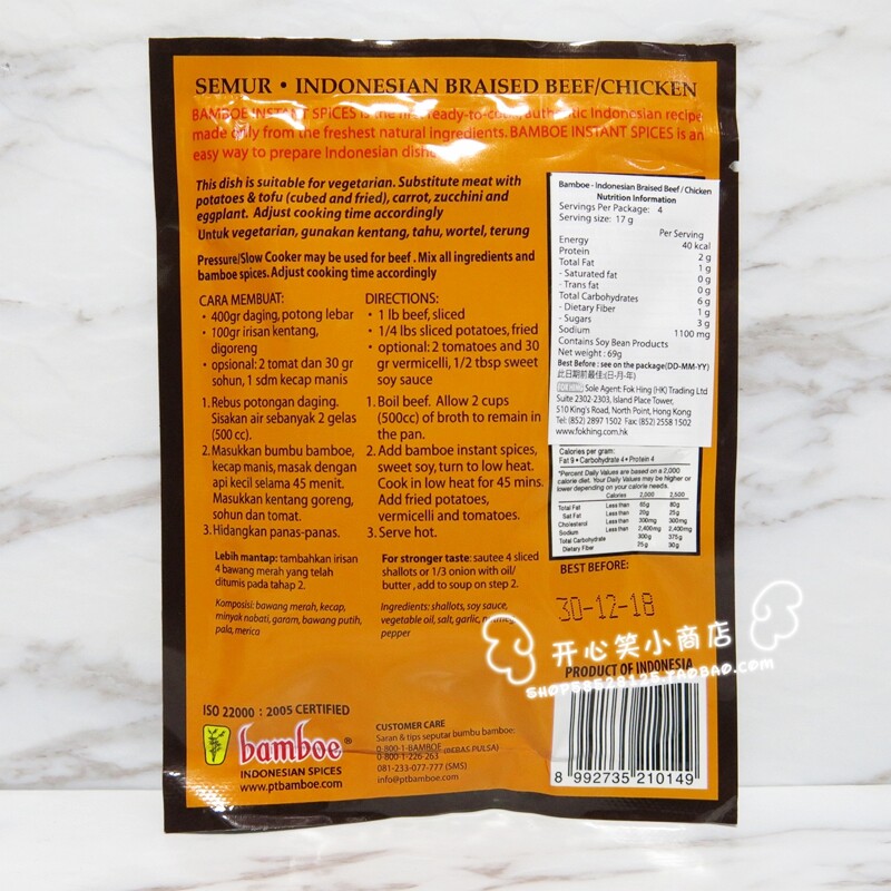 印尼 山竹牌 炖牛肉/鸡肉酱料 清真食品 Bamboe semur 69g