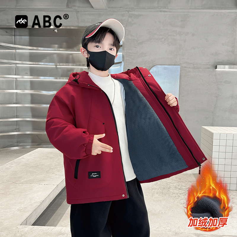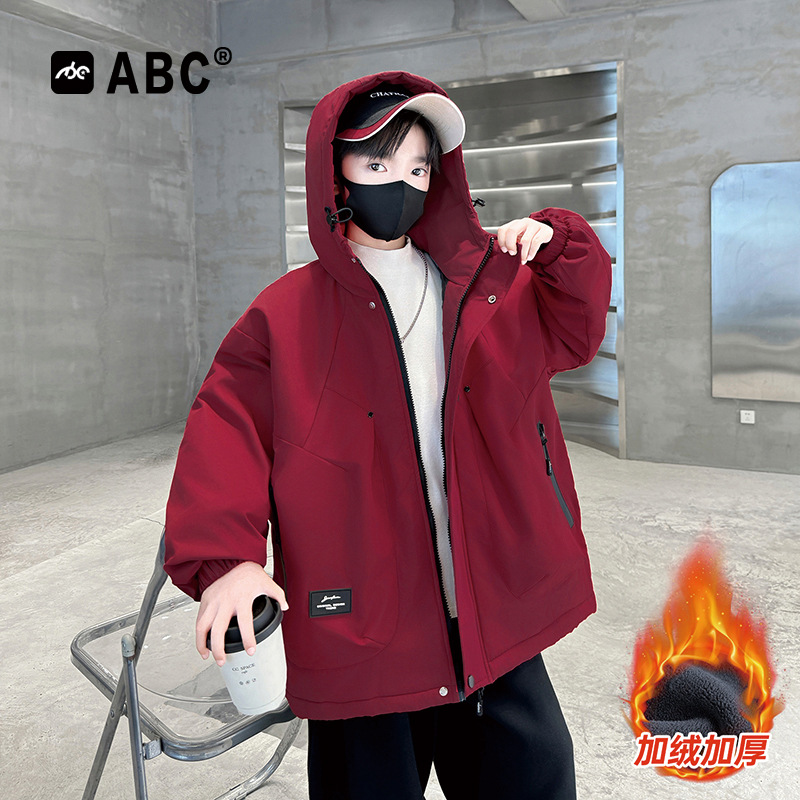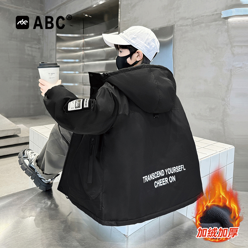 ABC男孩加绒加厚派克服2025新款中大童韩版外套男童秋冬防风棉服