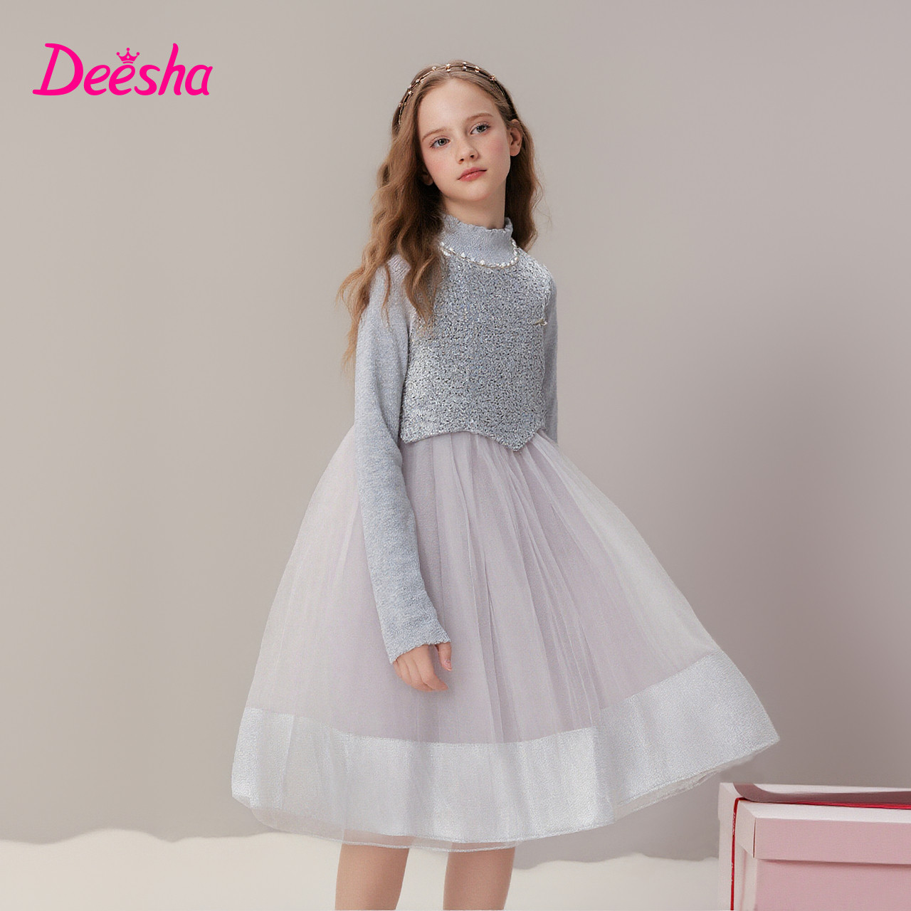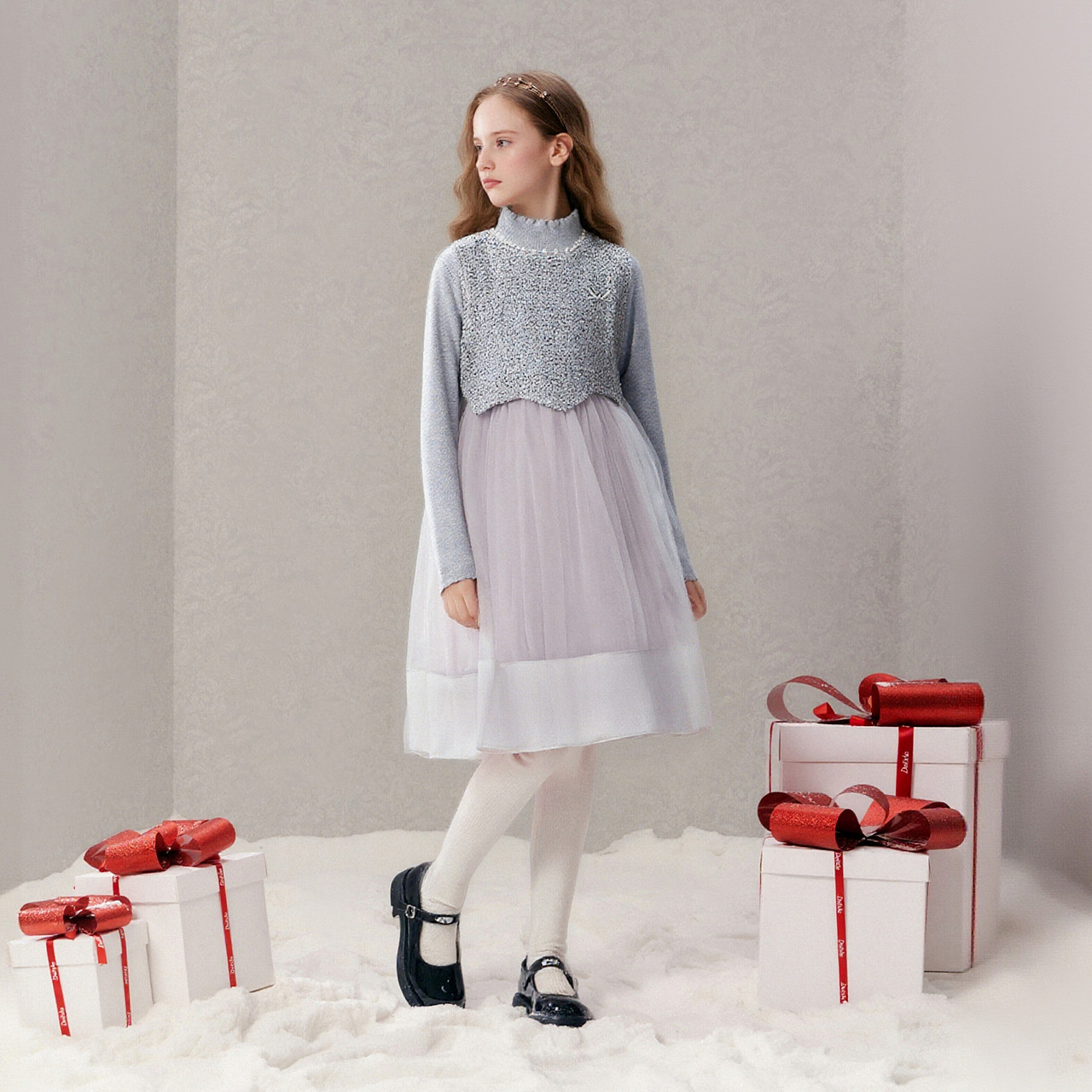 笛莎童装女童连衣裙冬季新款中大童儿童女孩高级礼服加绒公主裙子