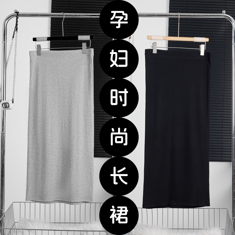 孕妇裙子秋季外穿简约百搭半身裙中长款孕妇裙秋装宽松显瘦针织裙
