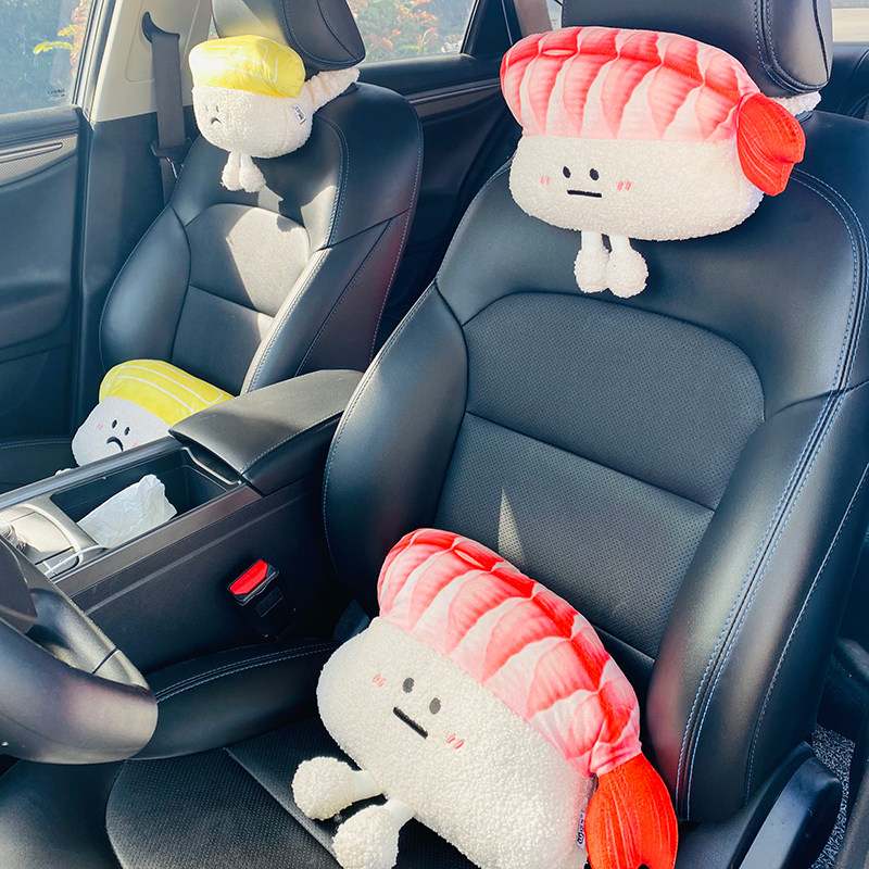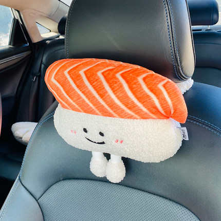 原创三文鱼寿司汽车头枕护颈枕金枪鱼汽内装饰卡通可爱汽车腰靠枕