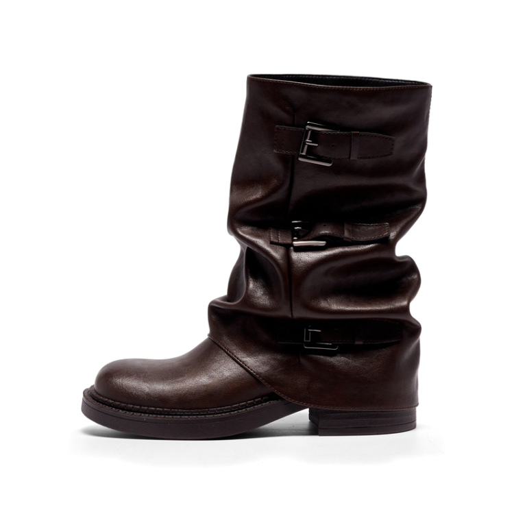 红蜻蜓新款冬季美式皮带扣裤管靴2025西部牛仔骑士靴CD62004411B