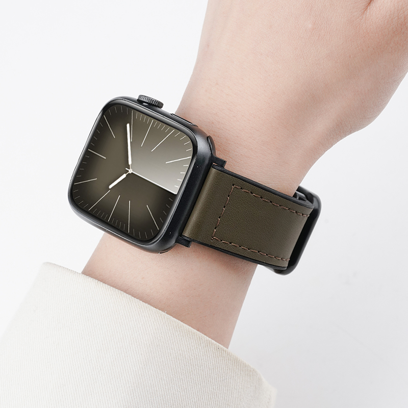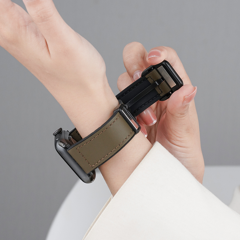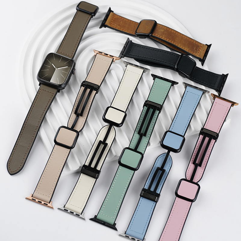 适用苹果ultra2/3手表applewatch S9/10透气11疯马皮纹表带磁吸扣真皮iwatchS8智能运动S7/6高级男秋冬透气