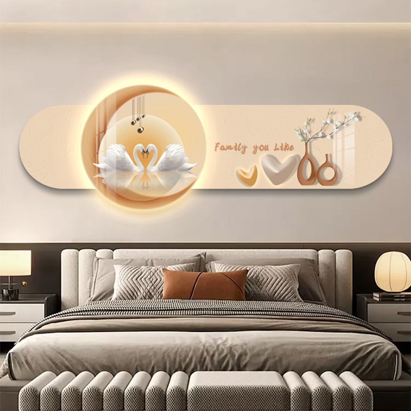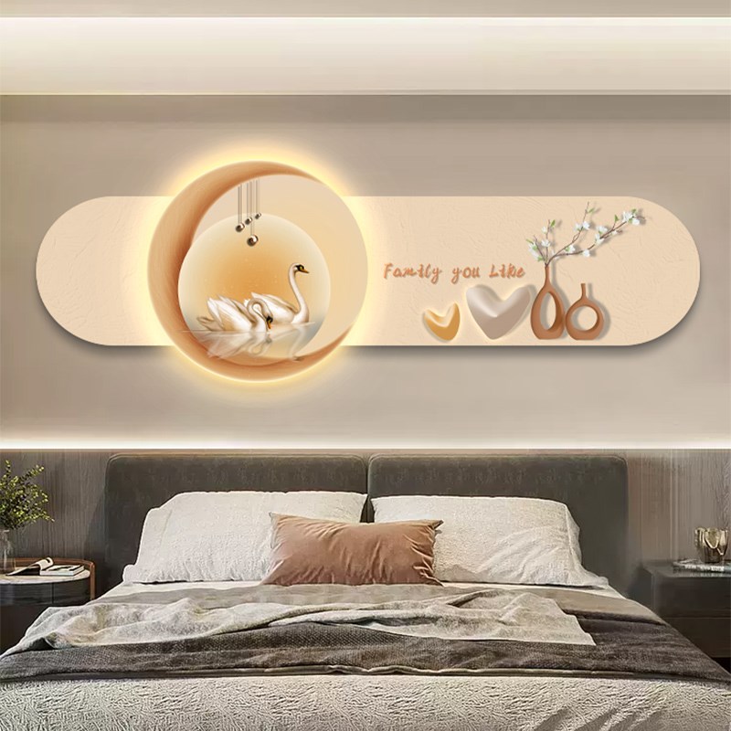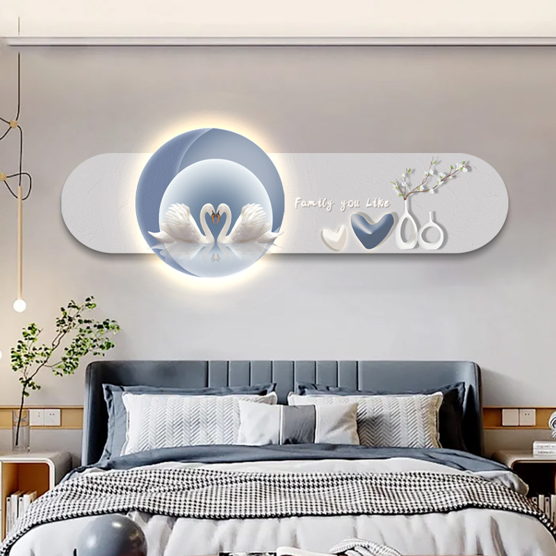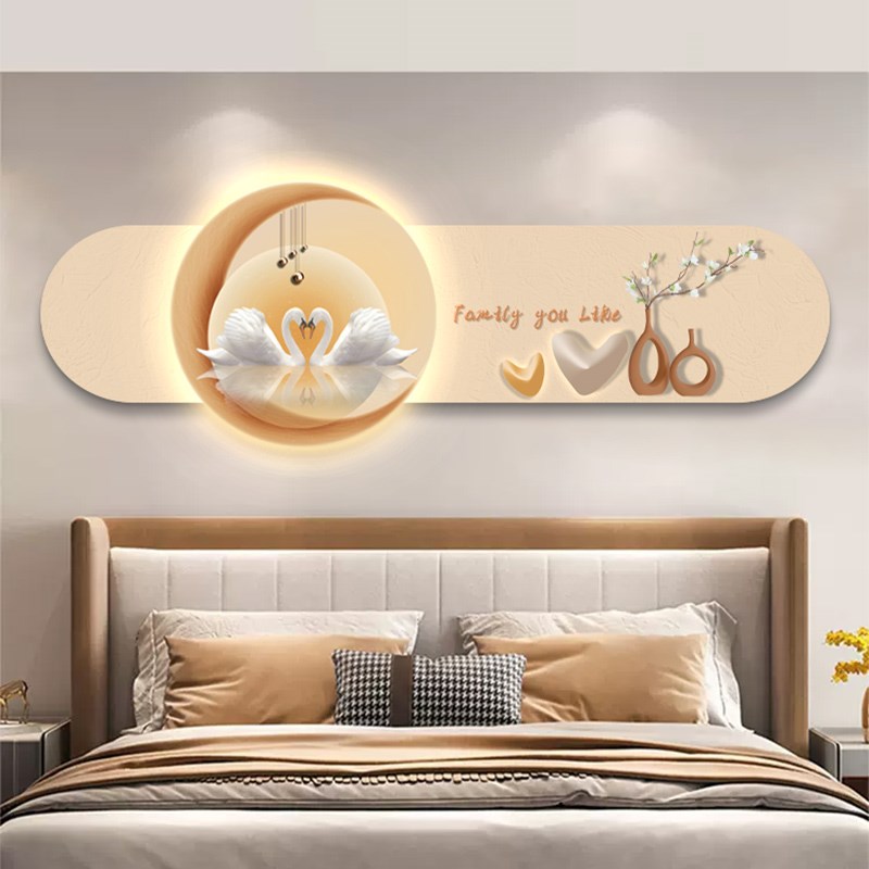 现代简约卧室装饰画天鹅温馨房间发光灯画轻奢主卧床头背景墙挂画