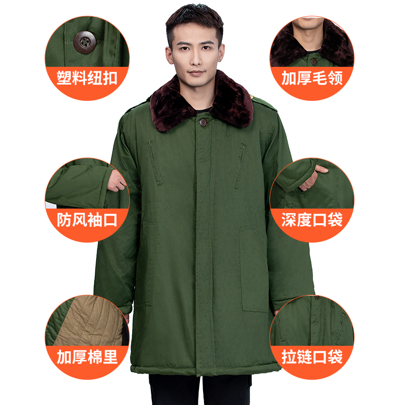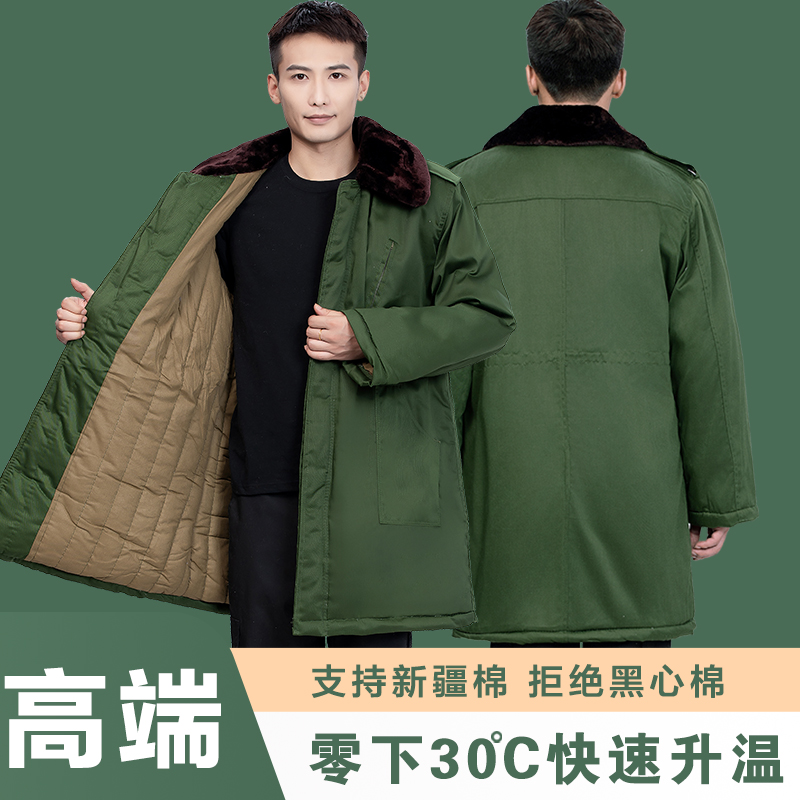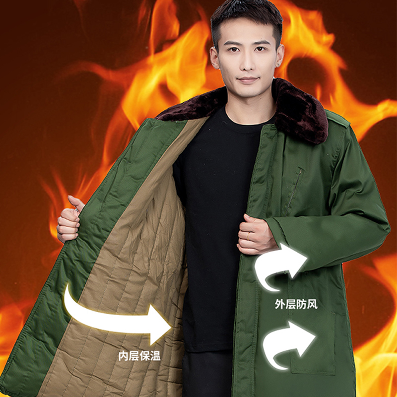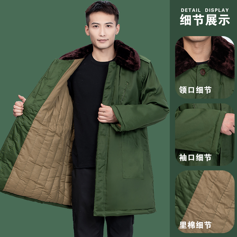 老式军大衣加绒加厚长款棉衣男女东北大棉袄冷库防寒服军绿大棉服