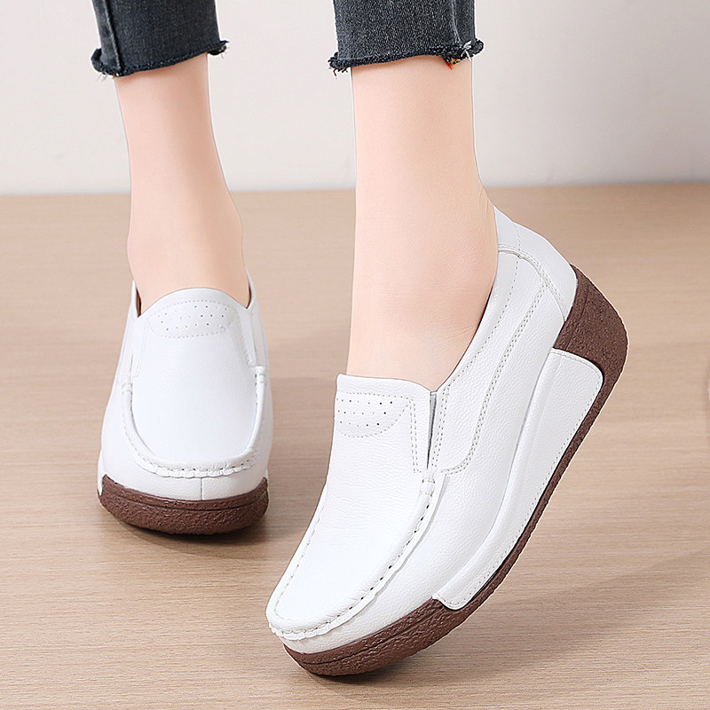 舒适轻便透气女软底软面圆头纯色松糕底厚底洋气时尚休闲女鞋简约