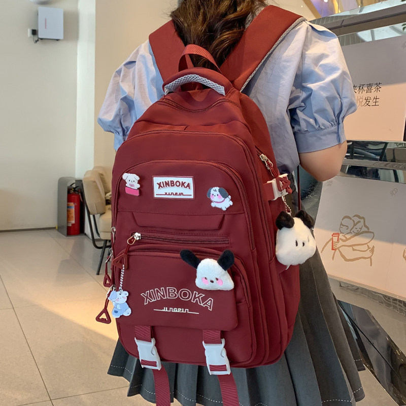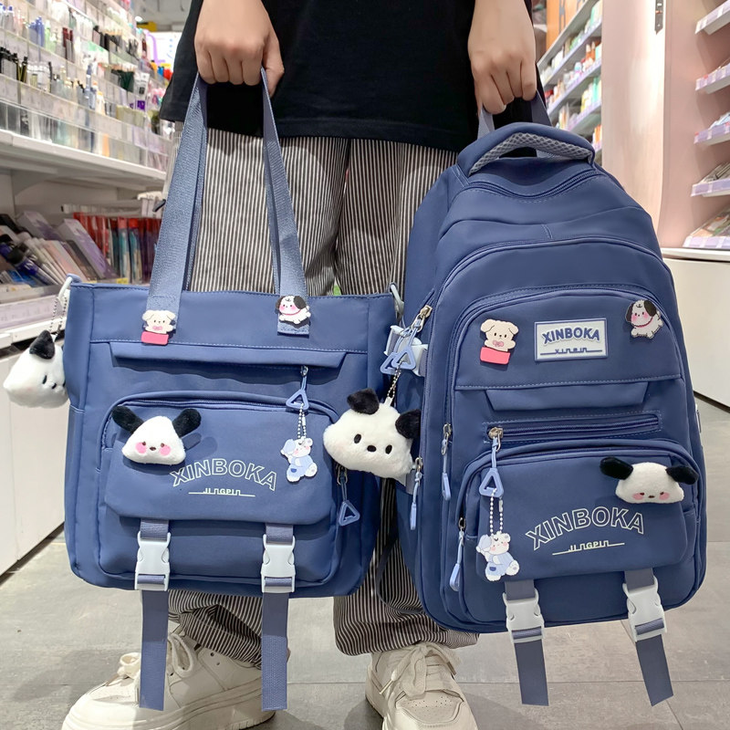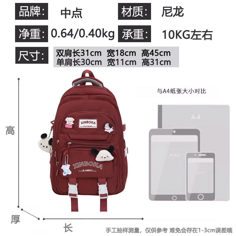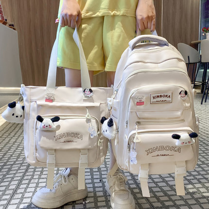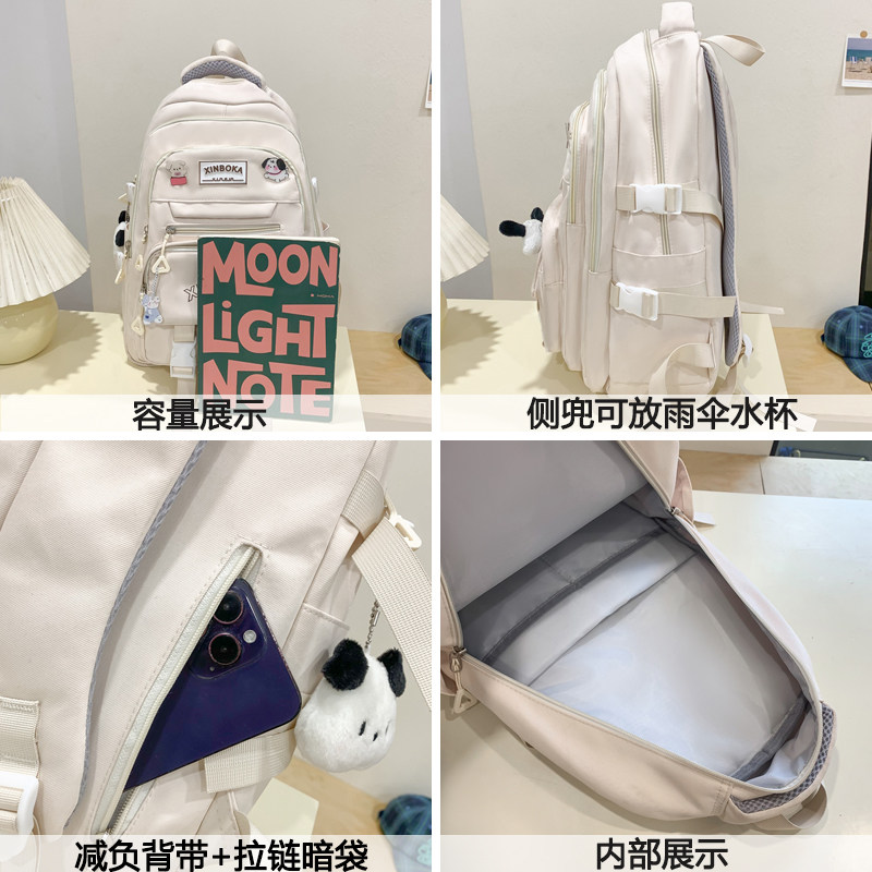 中点两件套书包女初中生高中小学生三到六年级纯色大容量双肩背包
