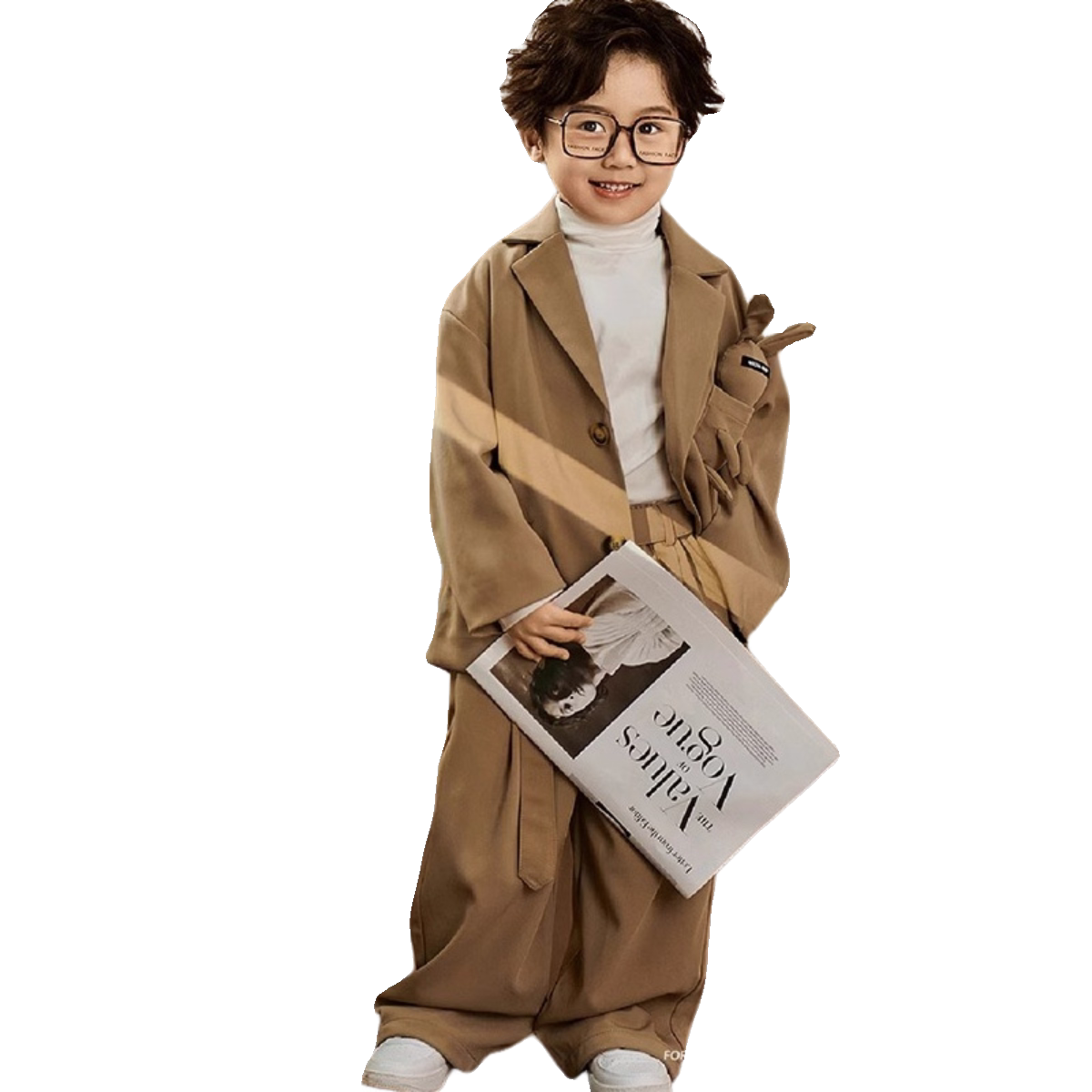 儿童摄影服装卡其色西服男童拍照套装时尚杂志风影楼写真艺术照