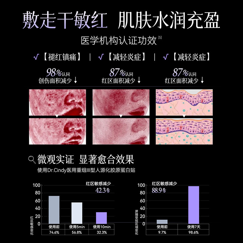 医用重组Ⅲ型人源胶原蛋白冷敷贴面膜水光针医美术后泛红修复补水