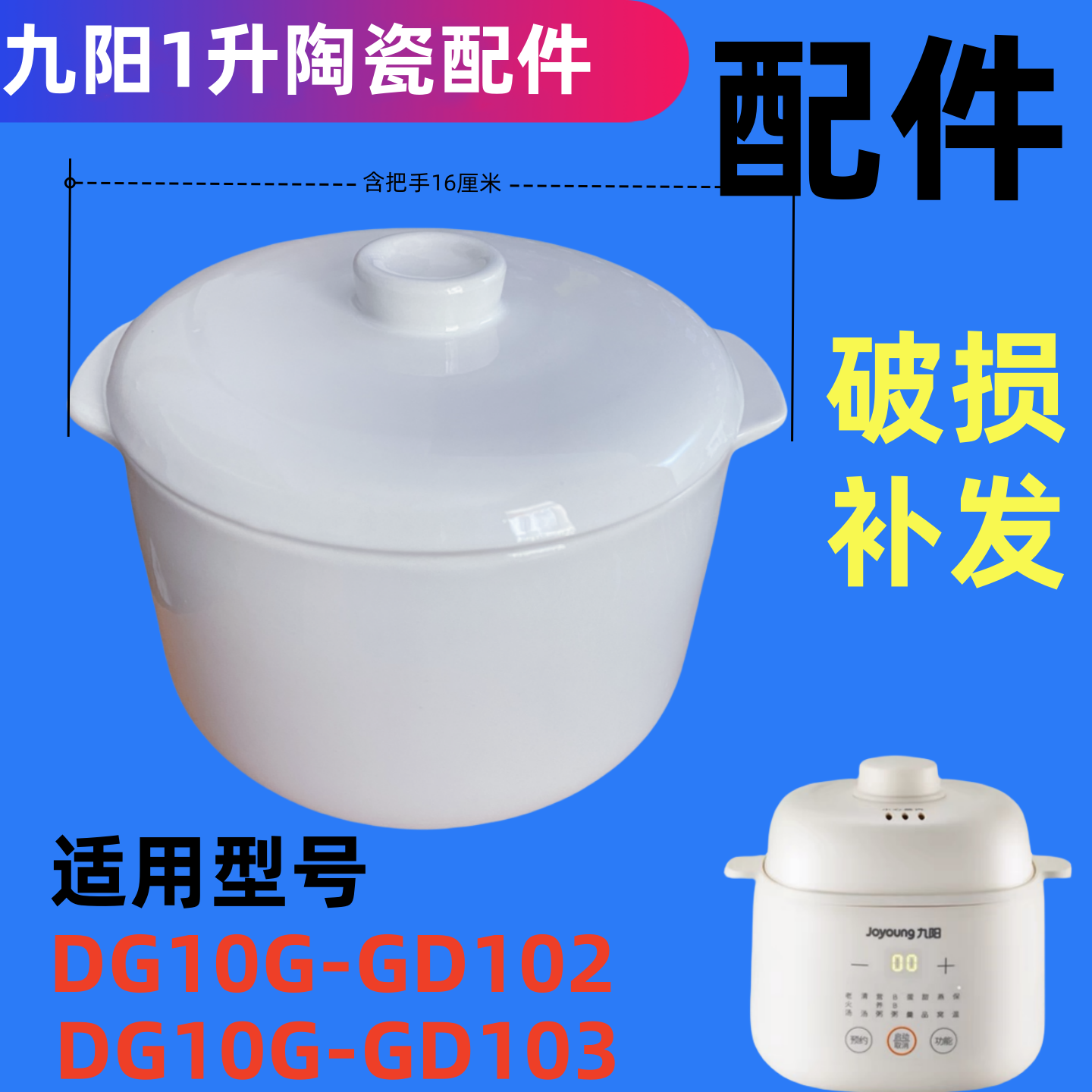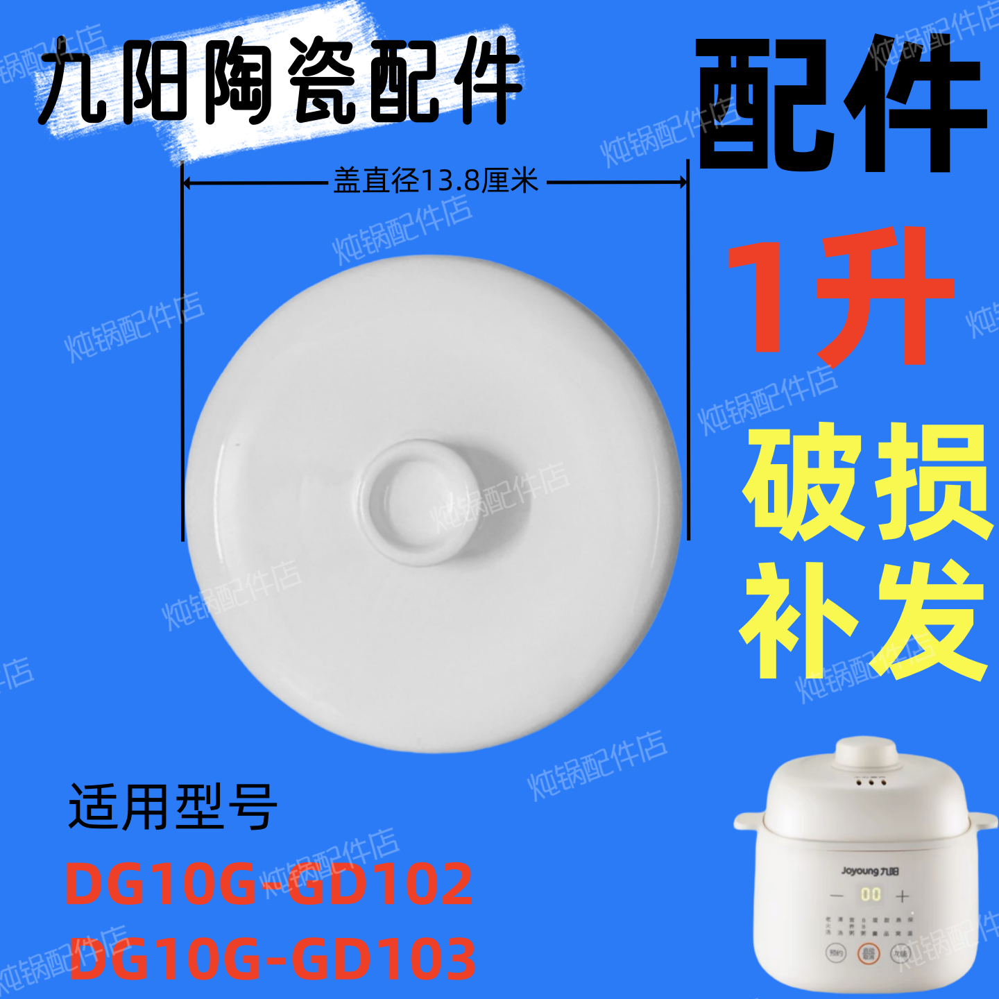 适用九阳电炖锅1升配件GD102/103辅食炖盅隔水炖陶瓷内胆单盖配件