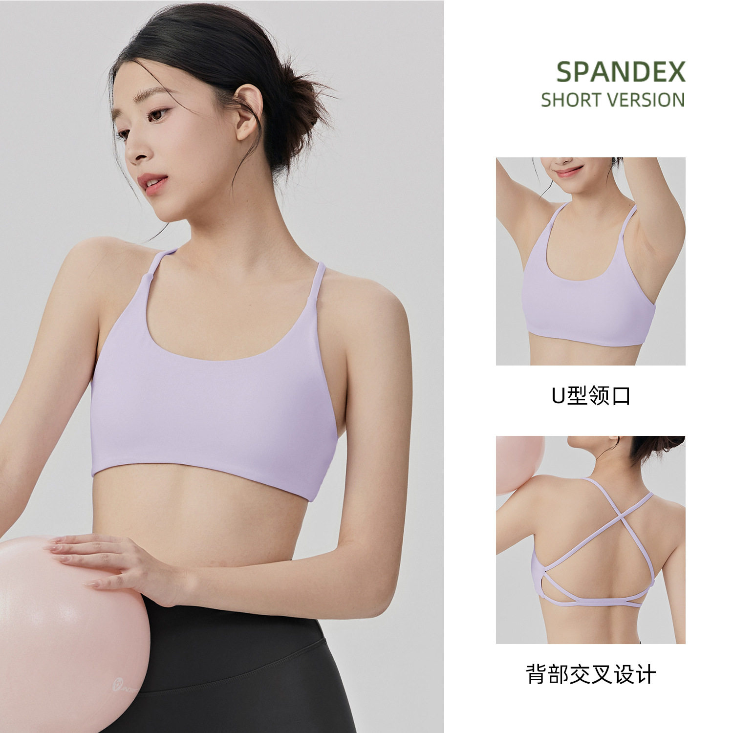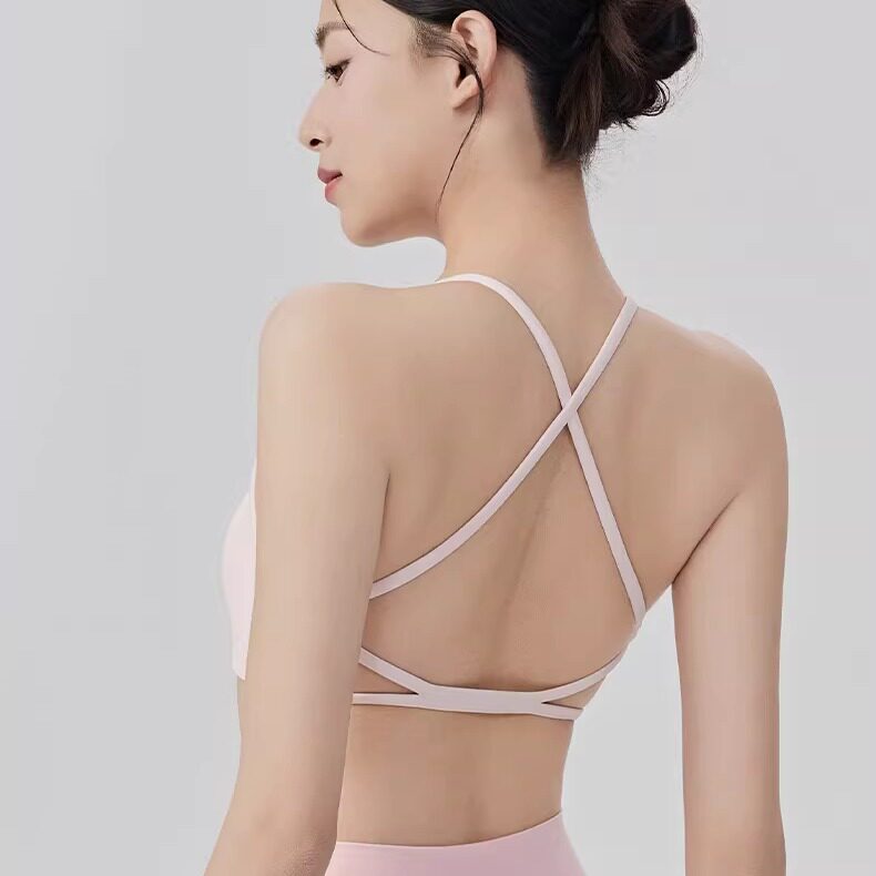 裸感交叉美背瑜伽文胸带胸垫