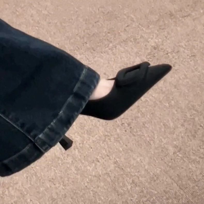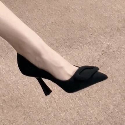 黑色不累脚高级感高跟鞋女2025年新款法式方扣浅口单鞋礼仪工作鞋