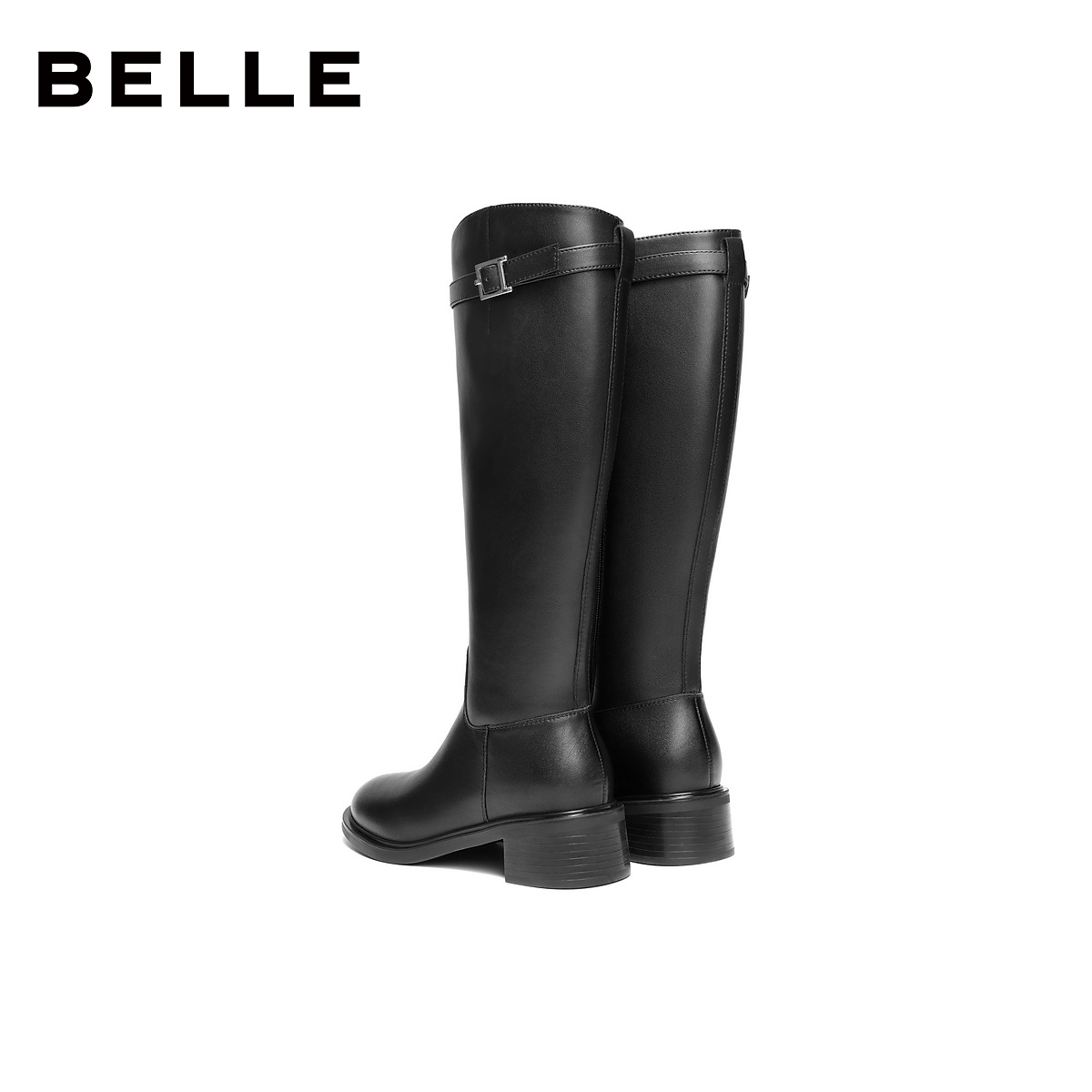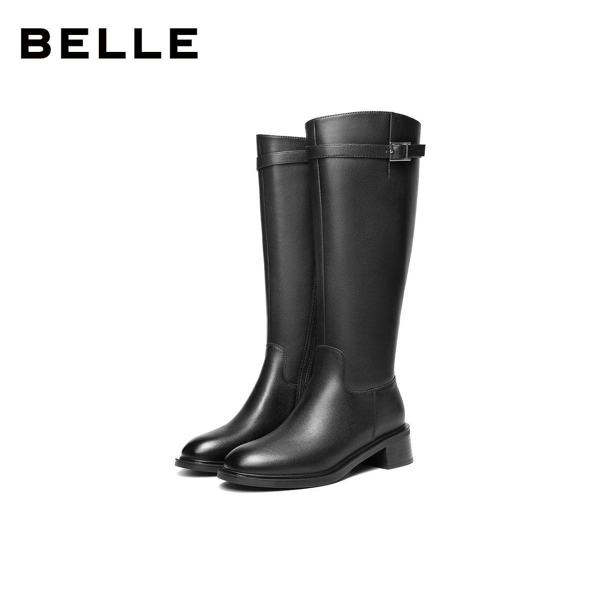 百丽双子星厚底长筒靴骑士靴女2025冬季新款真皮高筒靴F2X1DDG5