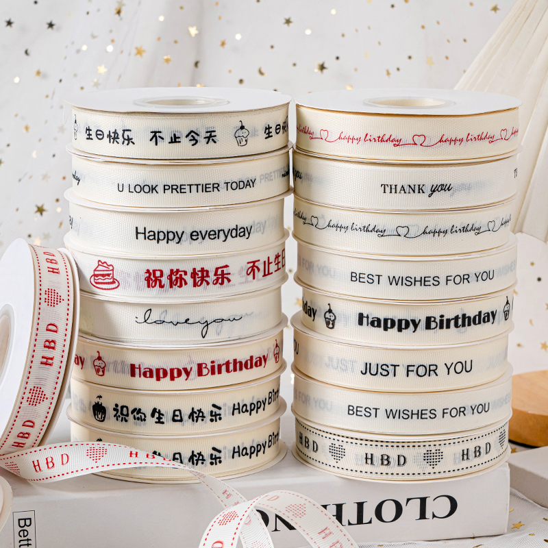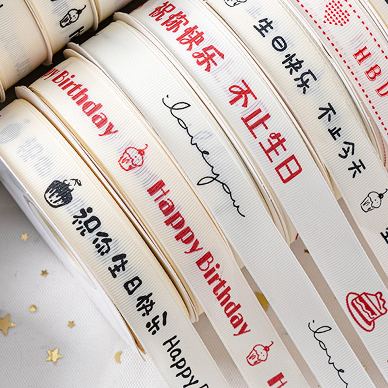 生日蛋糕盒丝带ins罗纹米白色英文彩带花束礼物盒包装盒螺纹绑带