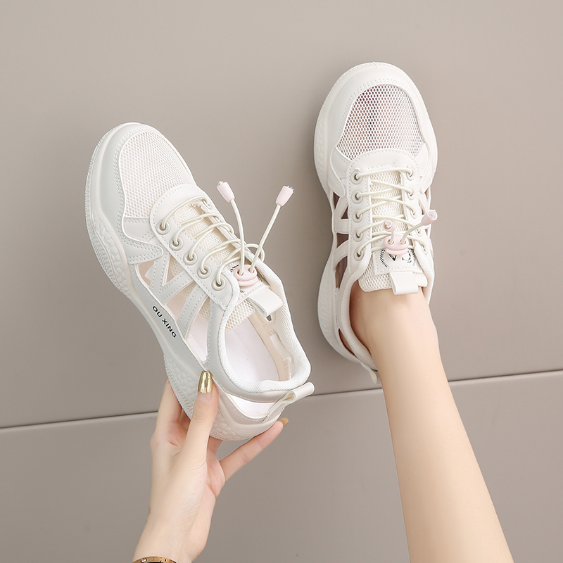 品牌真皮洞洞鞋女夏季2025新款软底不累脚网面运动休闲鞋罗马凉鞋
