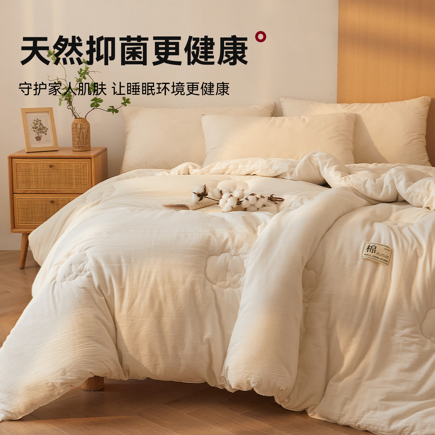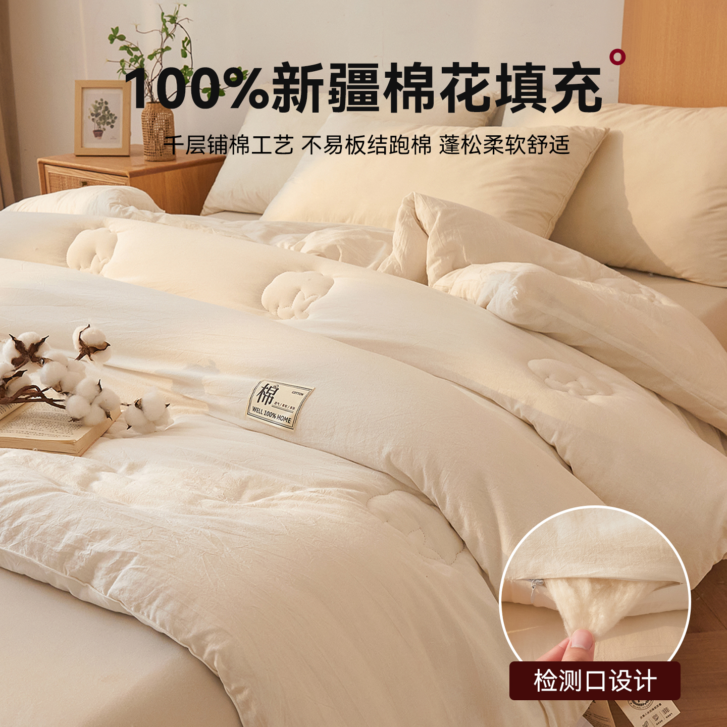 红豆家纺100%里外全棉新疆棉花被