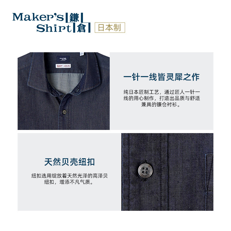 镰仓男士衬衫全棉牛仔休闲衬衣kamakurashirts日本制26年春装新款