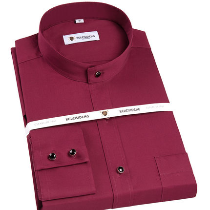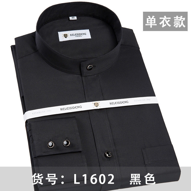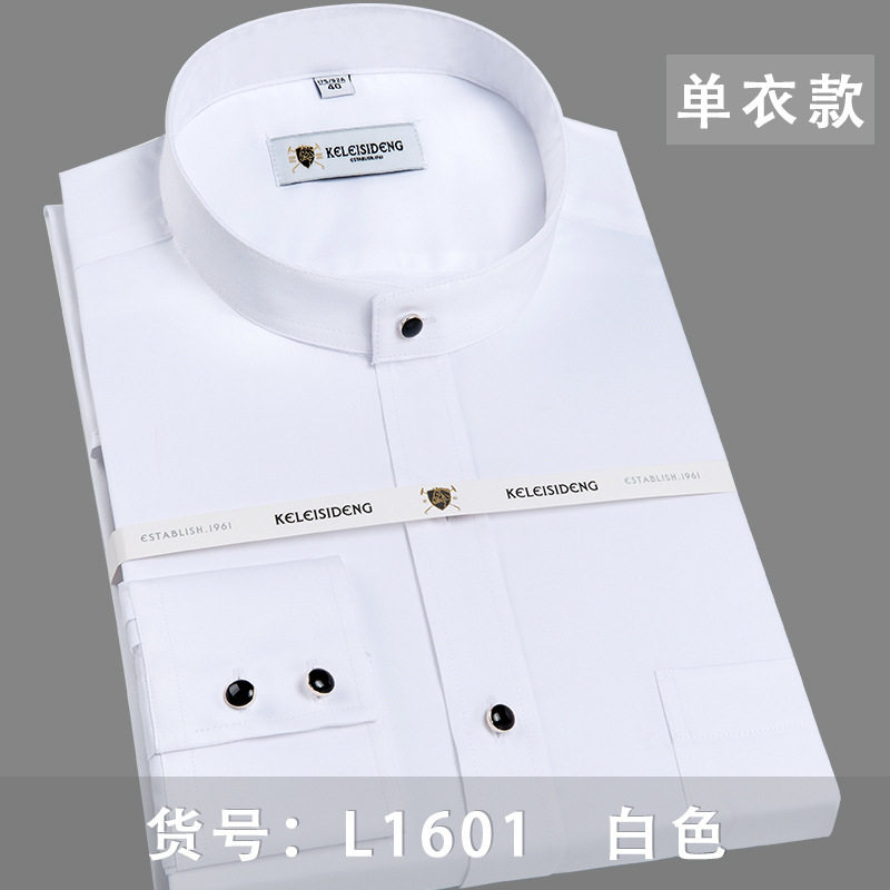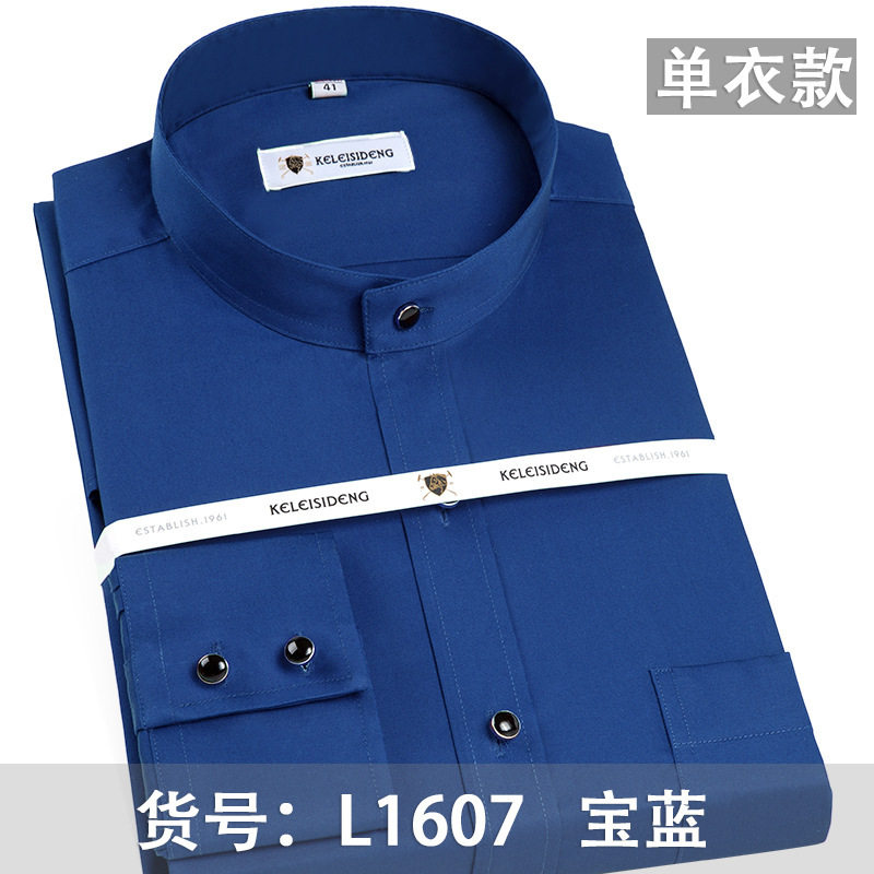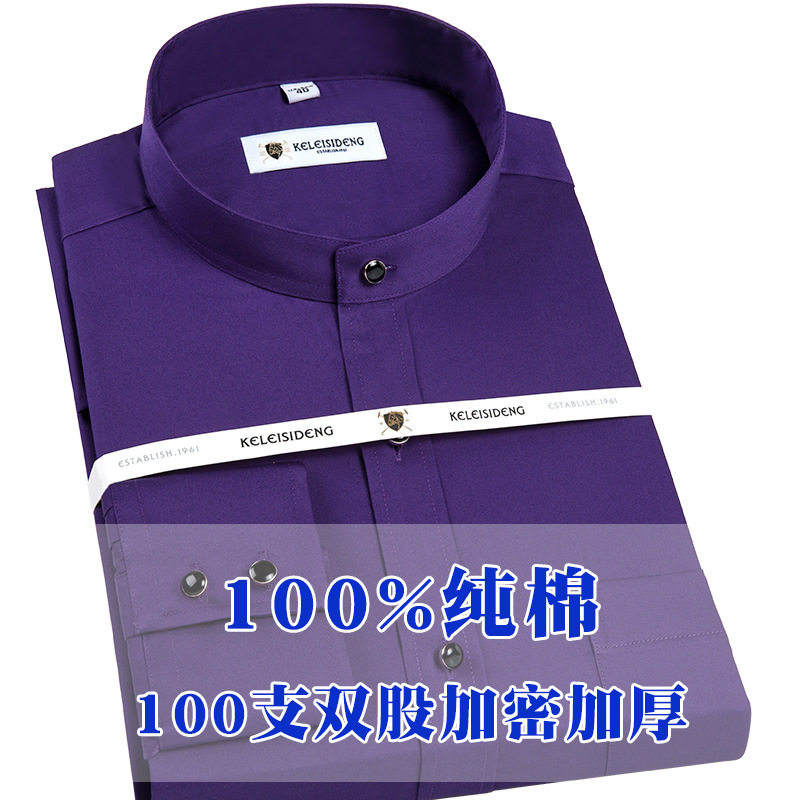 春新款丝光棉中华立领衬衫男长袖青年商务休闲全棉免烫立领衬衣