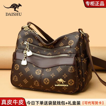 品牌袋鼠真皮女包2025新款欧美时尚洋气单肩包女士妈妈斜挎包百搭