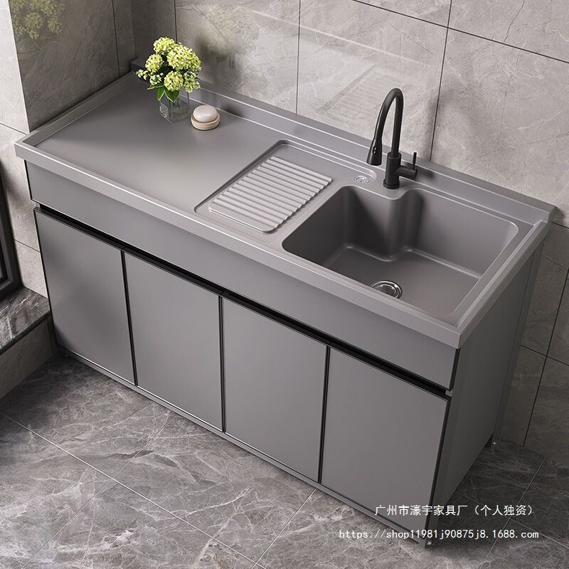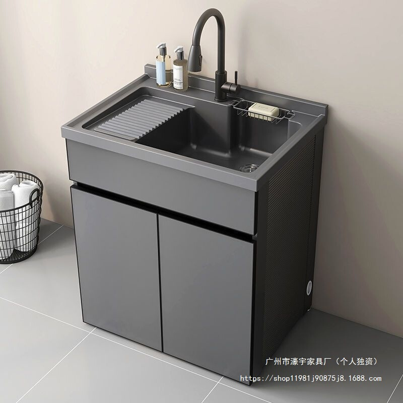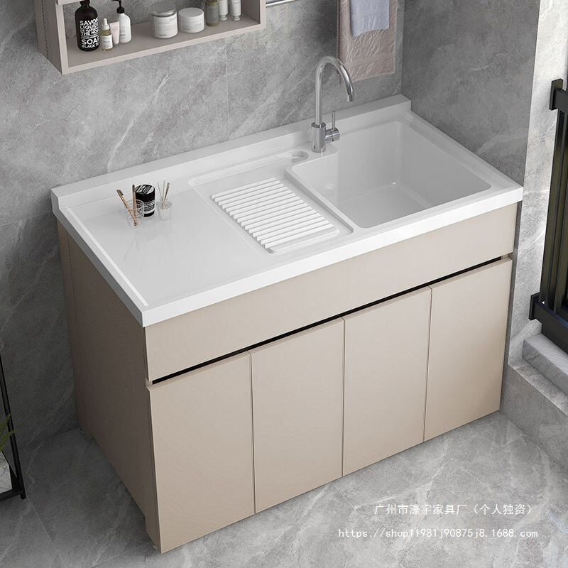 不锈钢蜂窝铝阳台洗衣柜组合洗衣池带搓衣板石英石浴室柜落地柜