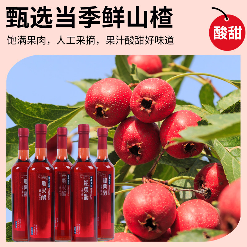 无糖型山楂醋饮料650ml*6瓶装0糖0脂0卡好消化水果汁发酵饮料整箱