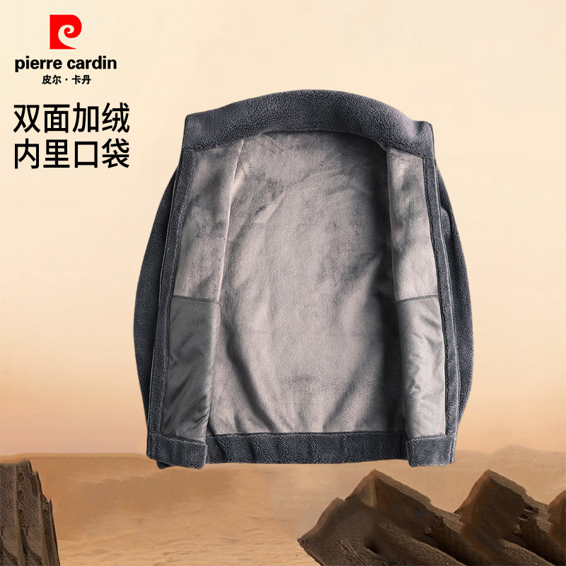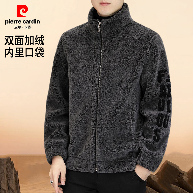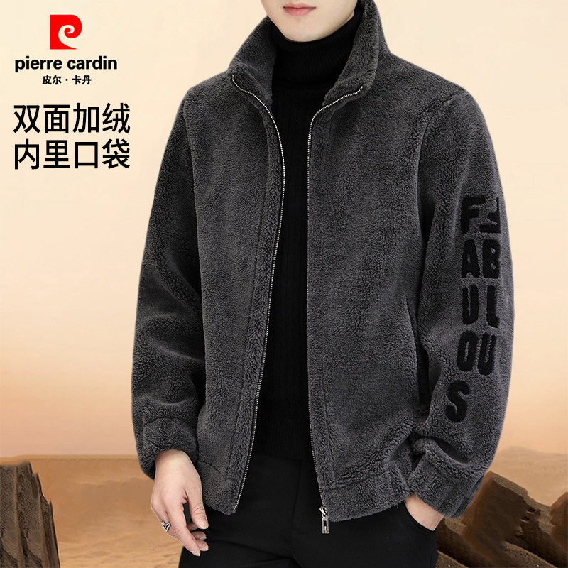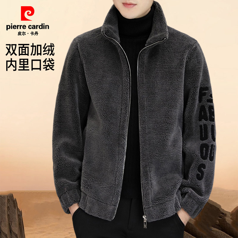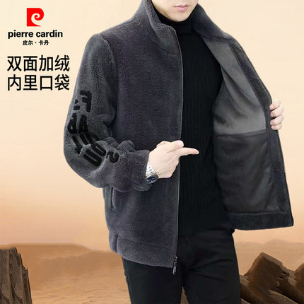 皮尔卡丹冬季羊羔绒外套男新款加绒加厚休闲时尚毛呢夹克男装外套