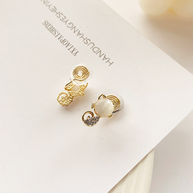可爱小猫咪耳饰小巧气质百搭耳钉简约日常耳环蚊香盘无耳洞耳夹女