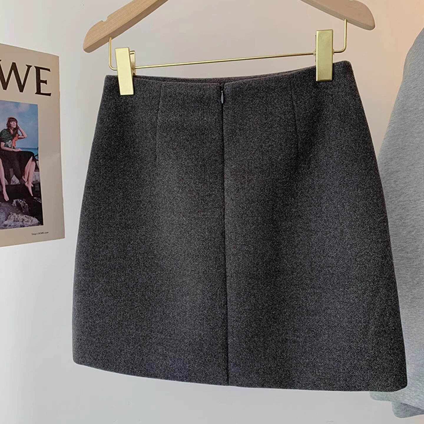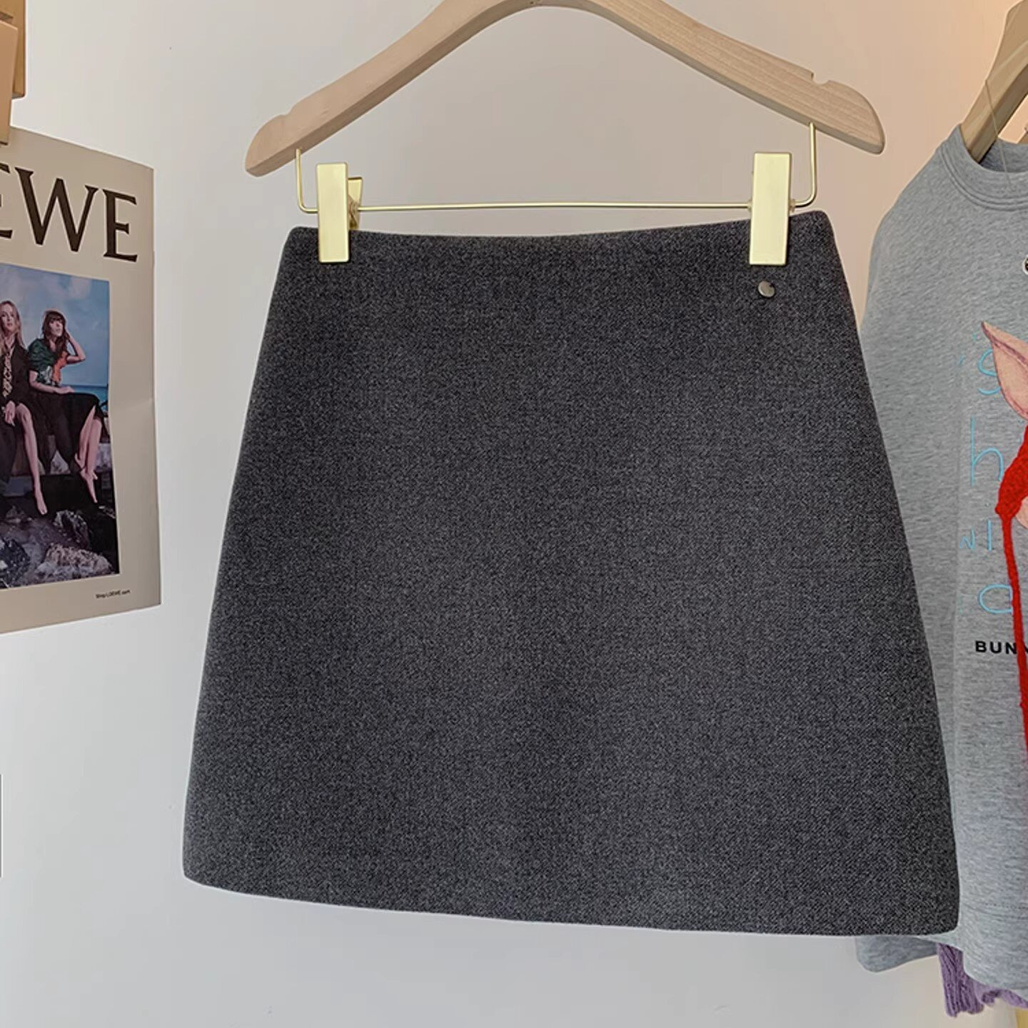 大码高级感灰色毛呢半身裙女秋冬高腰显瘦a字短裙气质呢子包臀裙
