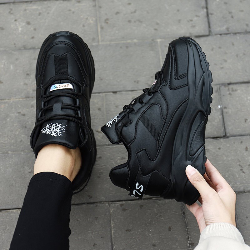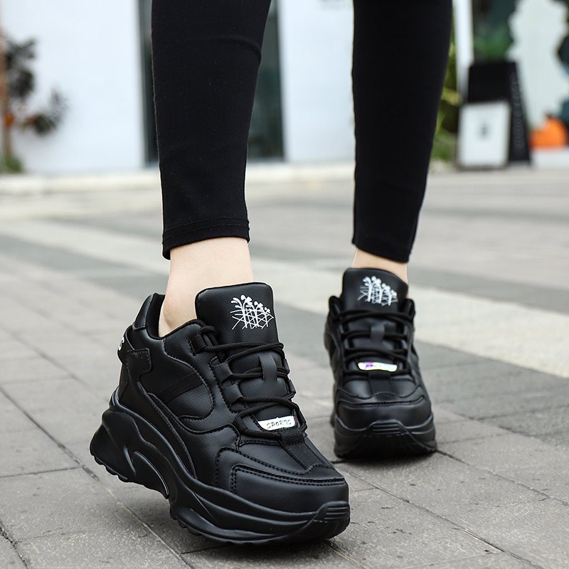 女鞋内增高鞋百搭厚底松糕鞋8厘米E小码老爹鞋皮面单鞋运动旅游鞋