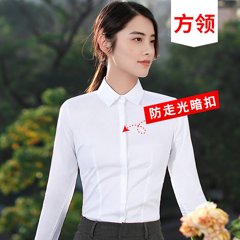 60棉白衬衫女长袖春夏新款职业正装气质抗皱修身内搭打底黑衬衣寸