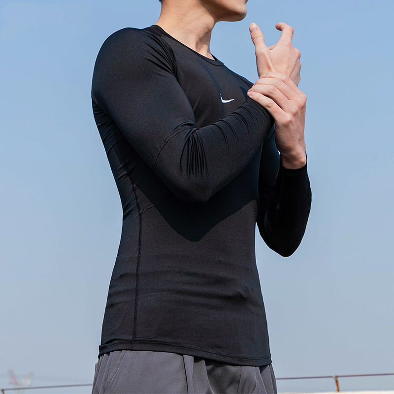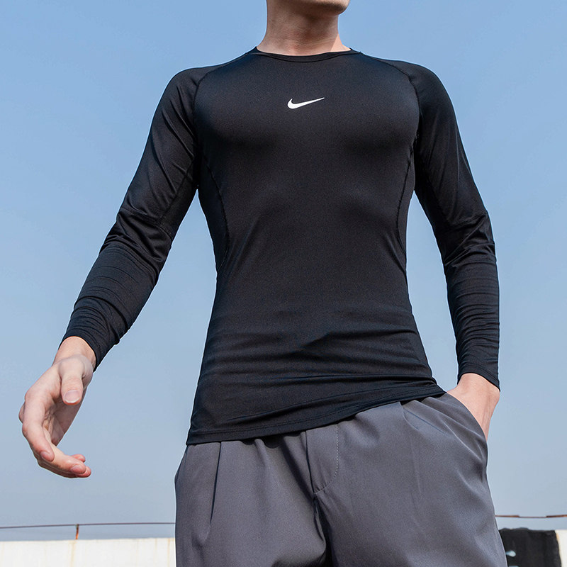 Nike耐克黑色紧身T恤跑步透气运动长袖高弹健身训练服FB7920