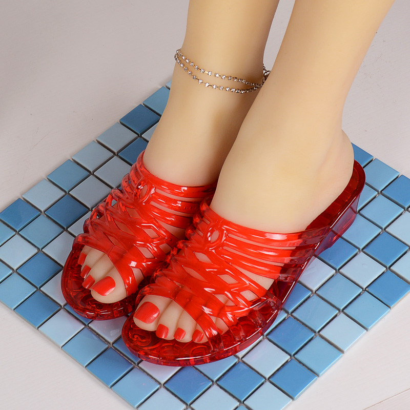 水晶塑料高跟女拖鞋夏时尚厚底凉拖鞋透明塑胶防滑室外穿妈妈拖鞋