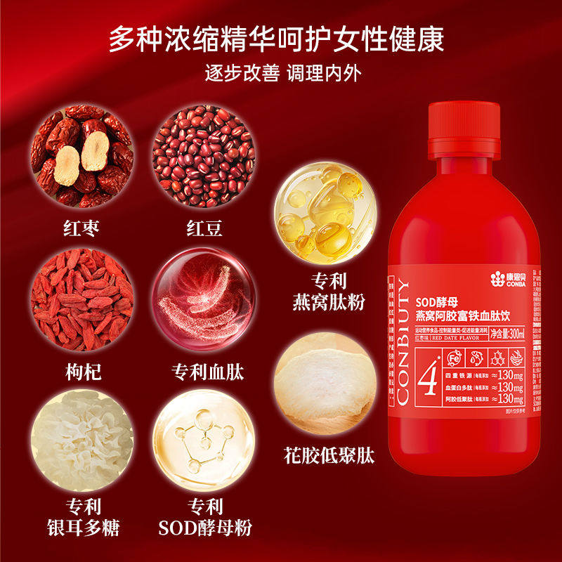 康恩贝SOD酵母燕窝阿胶富铁血肽饮女补血补气孕妇养气血口服液