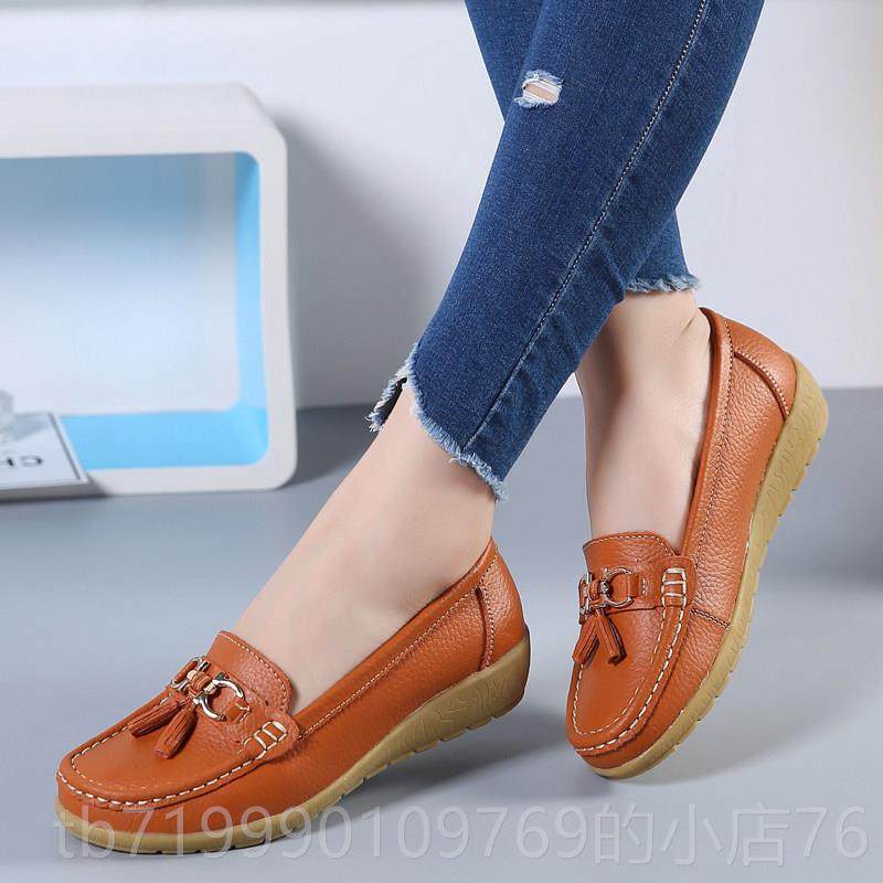 高档春秋季平底底女软休闲鞋中老年妈妈真皮鞋坡跟女单鞋护士小鞋