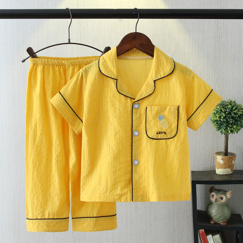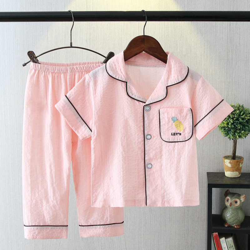 儿童睡衣夏季薄款棉纱短袖长裤睡衣女童男童宝宝中大童家居服套装