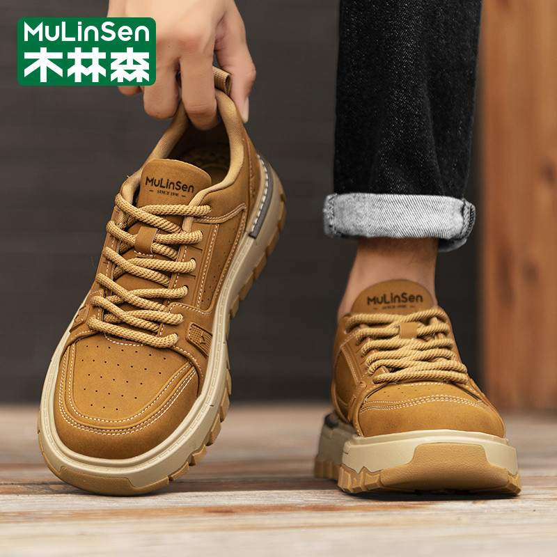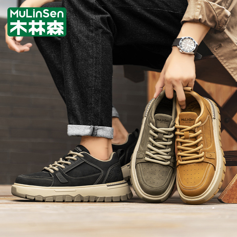 木林森男鞋冬季潮流复古风英伦板鞋休闲运动厚底工装马丁皮鞋短靴